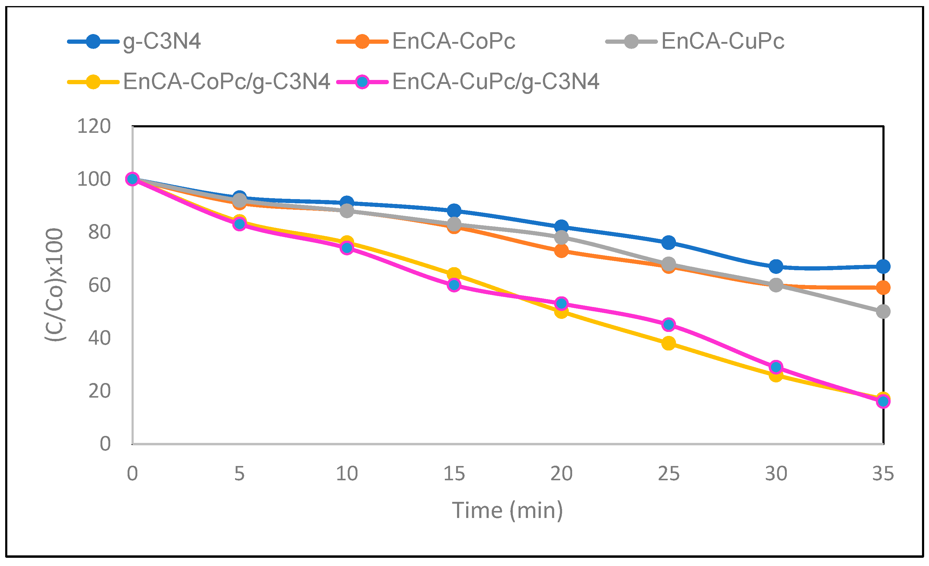 | EnCA-CuPc/g-C3N4 | 2,3-DCP | 2,3-Dichloro-1,4-BQ | 65.2 | 62.6 |