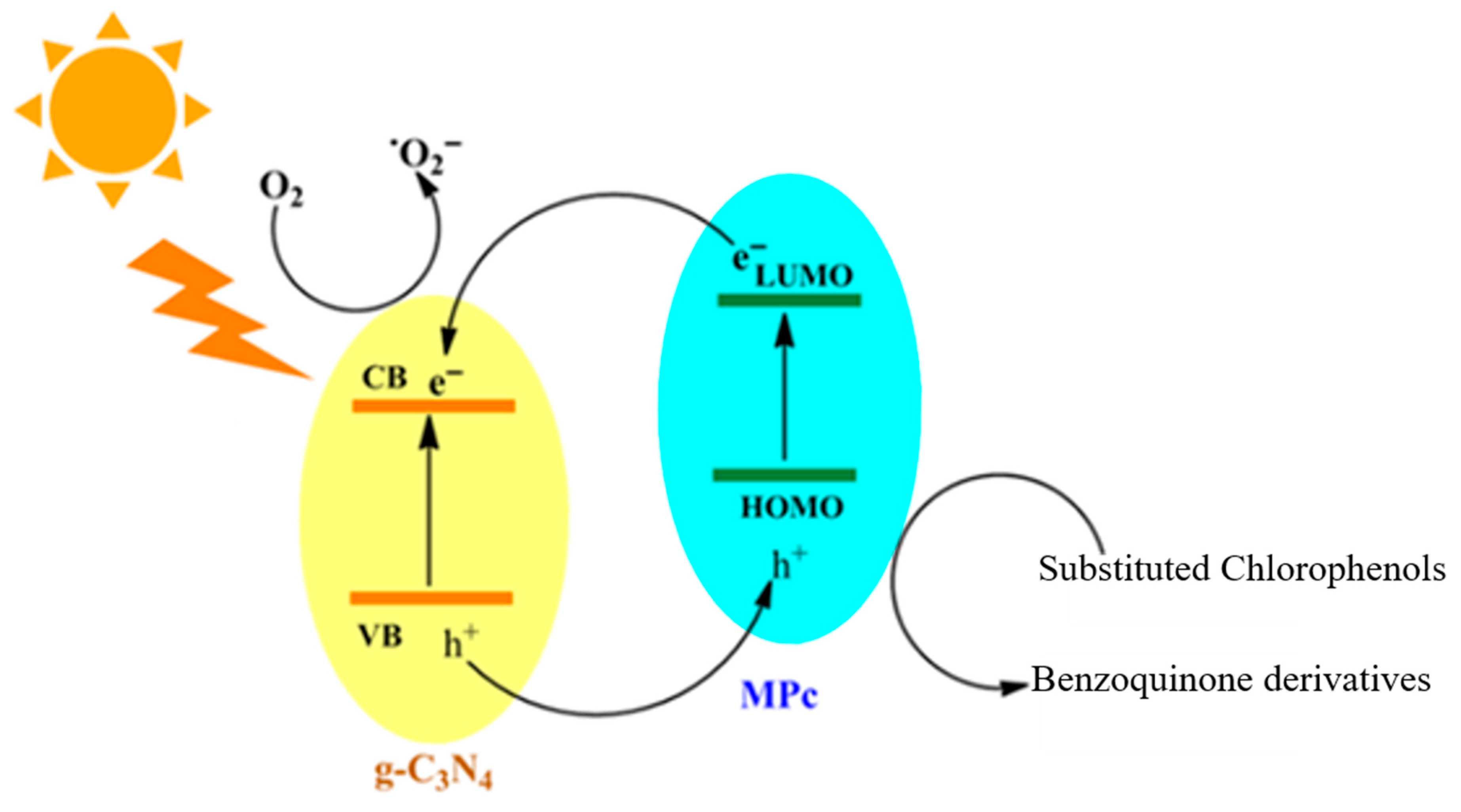- Zada, A.; Dong, Y.; Fu, X. Zinc phthalocyanine-sensitized g-C3N4 photocatalyst for enhanced visible-light degradation of chlorophenols. Appl. Catal. B Environ. 2021, 298, 120541. [Google Scholar]