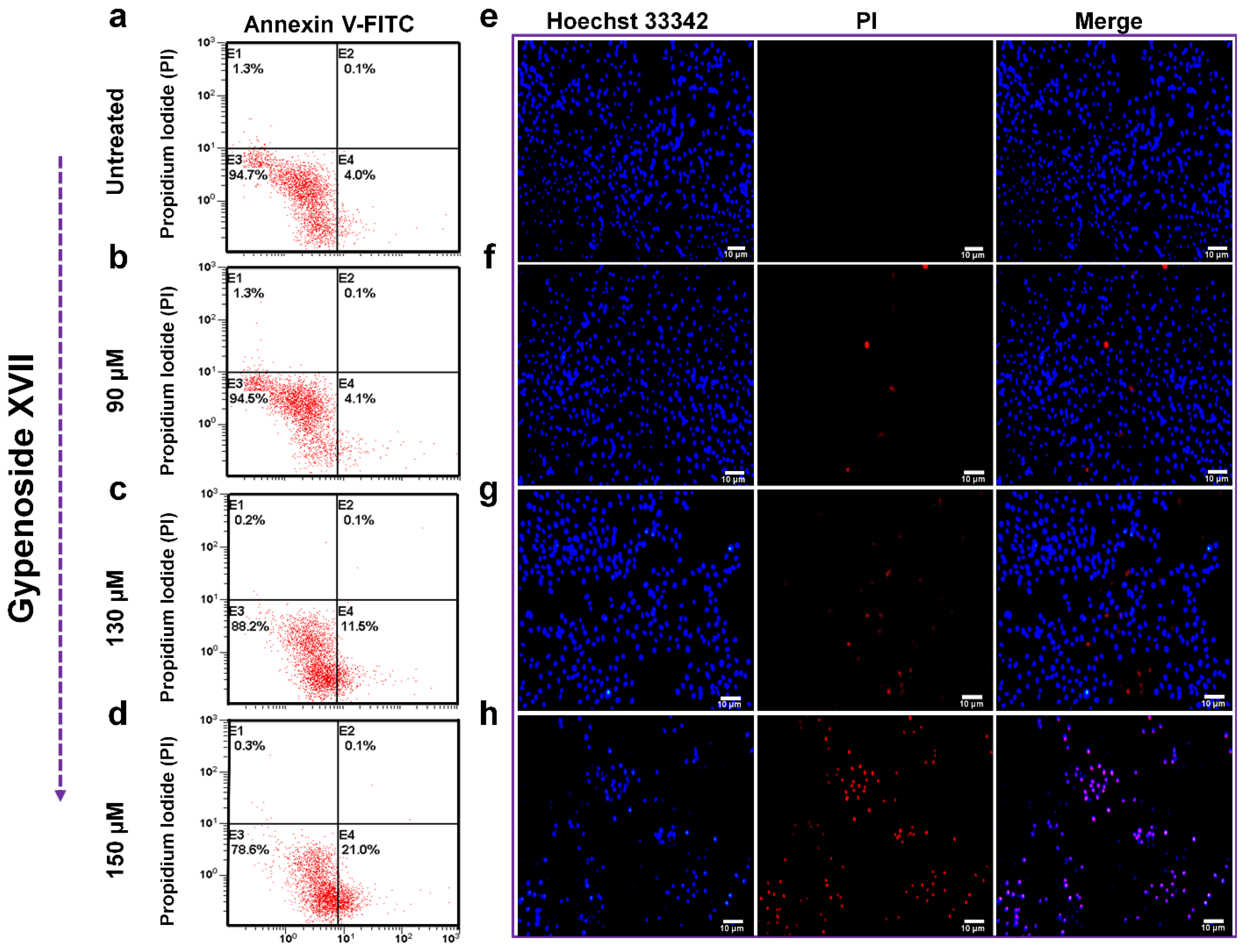2.3. Effect of Gypenoside XVII on HeLa Cell Apoptosis