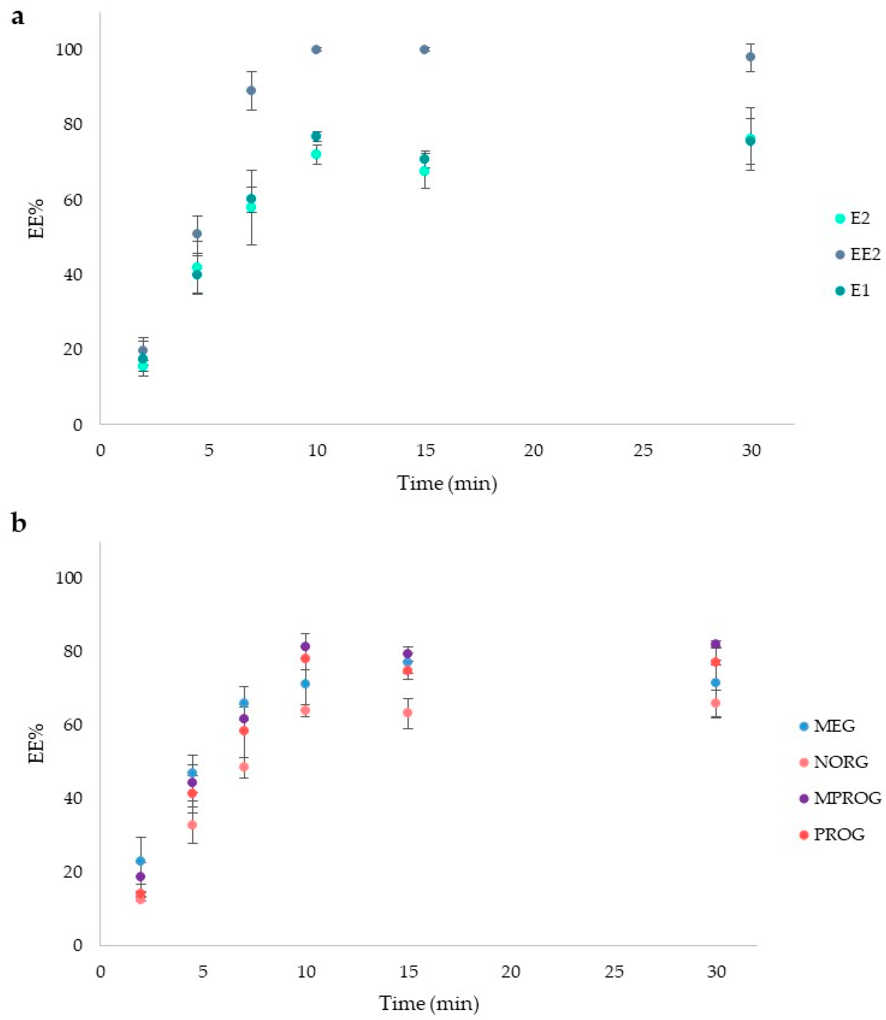 - Merlo, F.; Cerviani, V.; Fontàs, C.; Speltini, A.; Profumo, A.; Anticò, E. In-Vial Polycaprolactone Thin Film for Sampling and Microextraction of Sexual Hormones in Environmental Waters and Wastewaters Followed by HPLC-MS/MS. Anal. Chim. Acta 2025, 1362, 344164. [Google Scholar] [CrossRef] [PubMed]