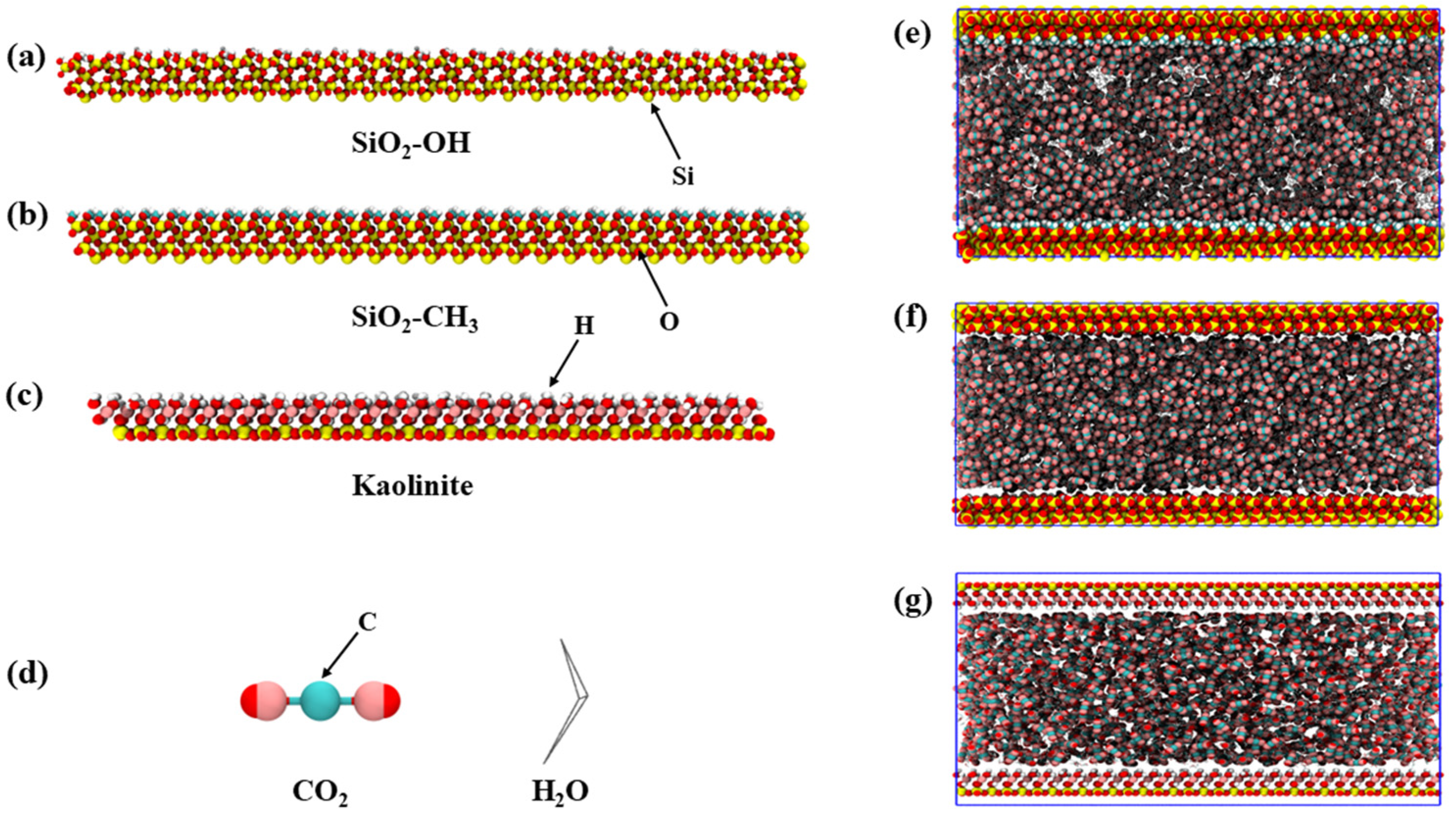 2 and water within three representative sedimentary pore environments, namely hydroxylated silica, methylated silica, and kaolinite. For the hydroxylated SiO