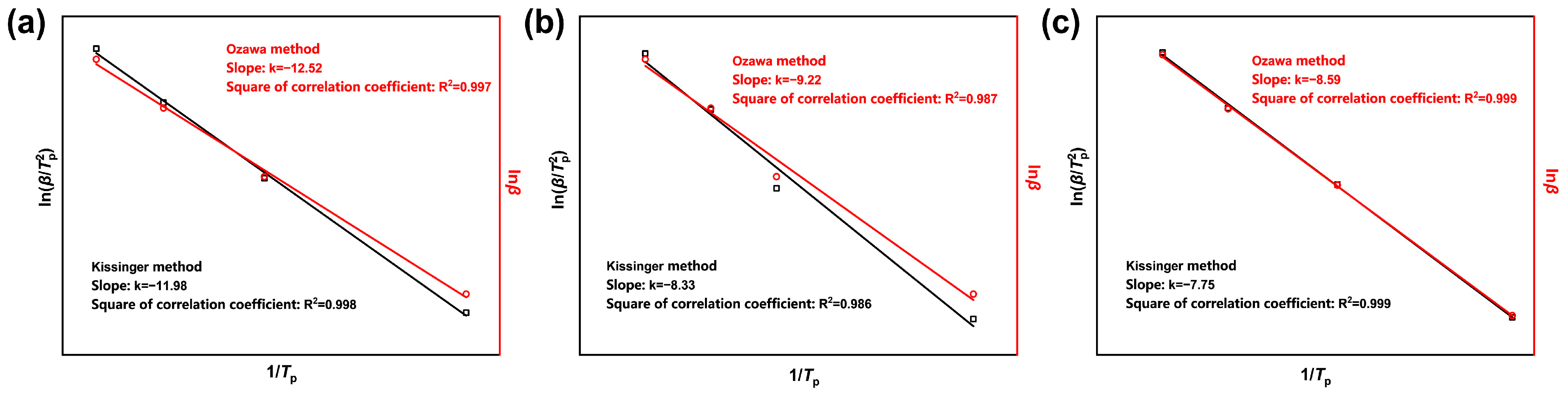- Vyazovkin, S. Kissinger Method in Kinetics of Materials: Things to Beware and Be Aware Of. Molecules 2020, 25, 2813. [Google Scholar] [CrossRef]
