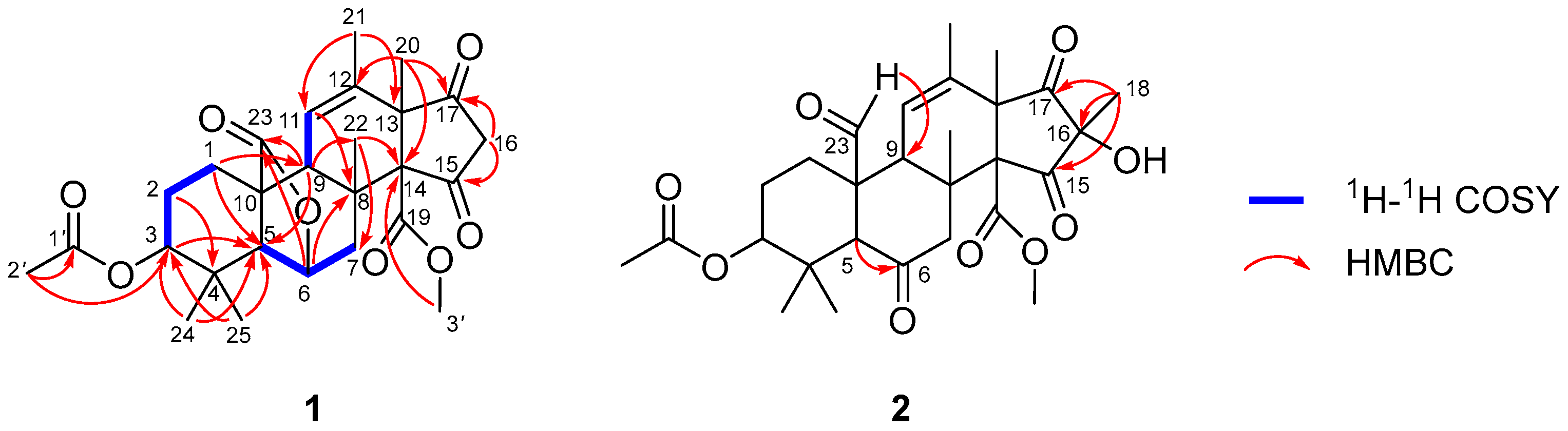 - Ren, J.W.; Huo, R.Y.; Liu, G.R.; Liu, L. New Andrastin-Type Meroterpenoids from the Marine-Derived Fungus Penicillium sp. Mar. Drugs 2021, 19, 189. [Google Scholar]