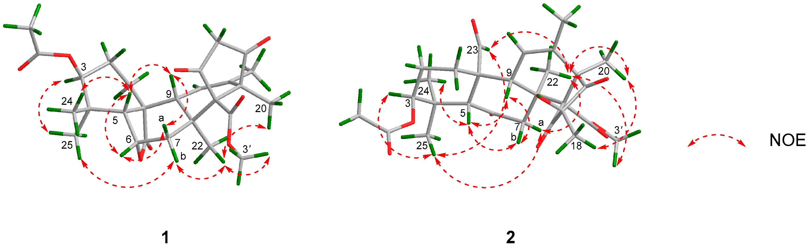 | 7 | a 2.48 dd (6.9, 4.4) | 38.2 | a 2.36 m | 32.2 |