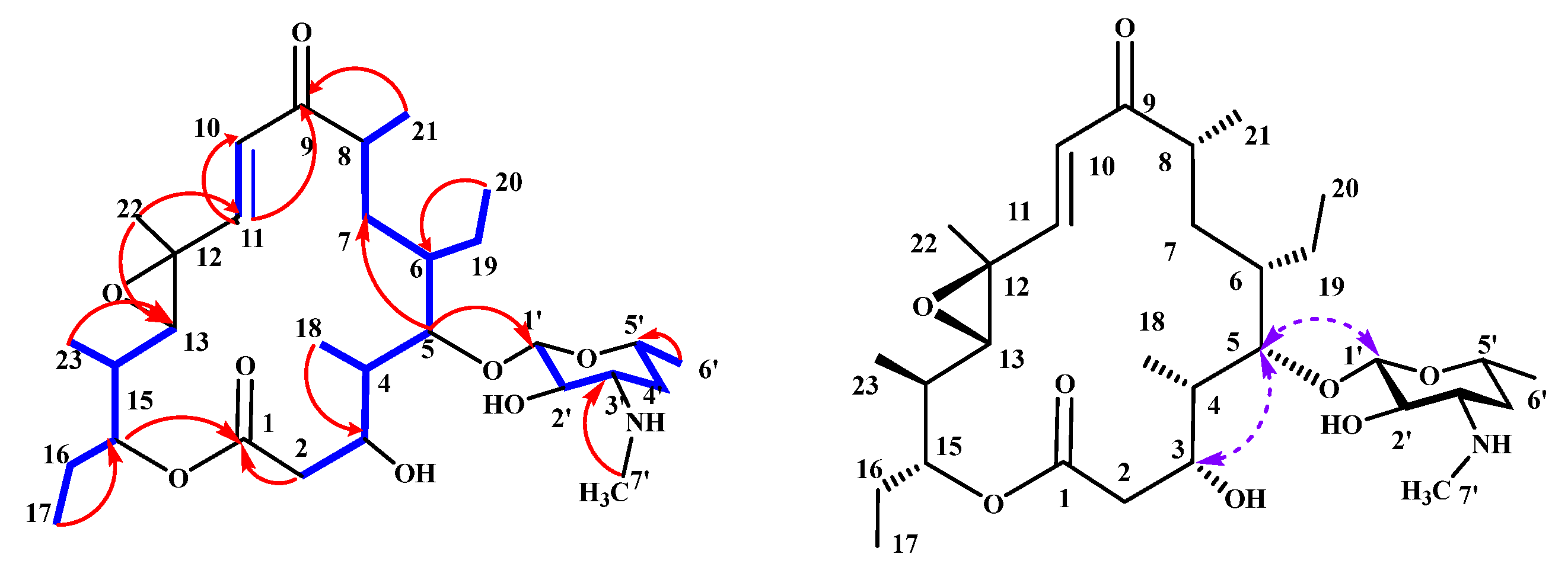 - Al-Fadhli, A.A.; Threadgill, M.D.; Mohammed, F.; Sibley, P.; Al-Ariqi, W.; Parveen, I. Macrolides from rare actinomycetes: Structures and bioactivities. Int. J. Antimicrob. Agents 2022, 59, 106523. [Google Scholar] [CrossRef]