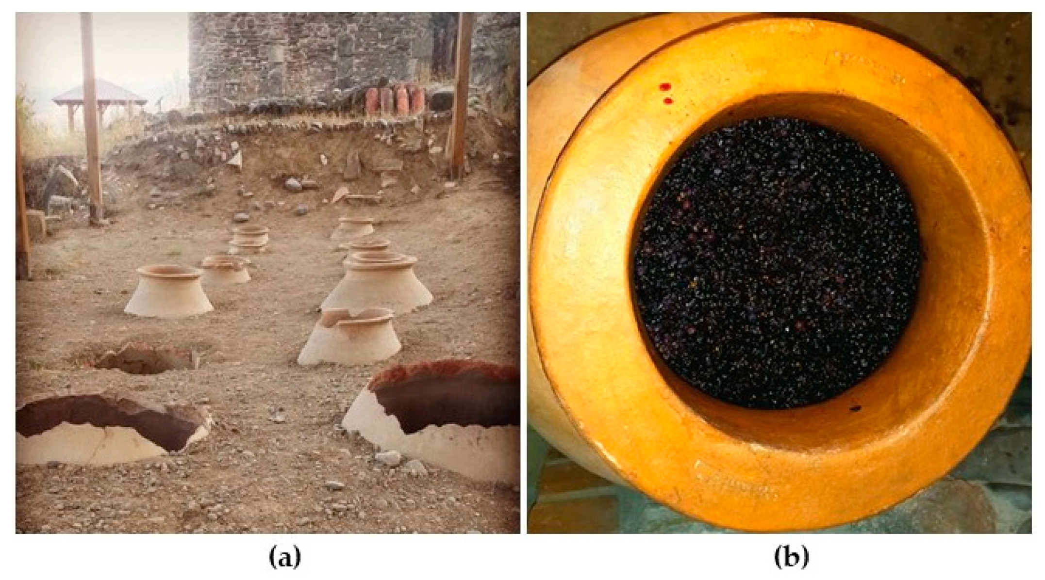- McGovern, P.; Jalabadze, M.; Batiuk, S.; Callahan, M.P.; Smith, K.E.; Hall, G.R.; Kvavadze, E.; Maghradze, D.; Rusishvili, N.; Bouby, L.; et al. Early Neolithic Wine of Georgia in the South Caucasus. Proc. Natl. Acad. Sci. USA 2017, 114, E10309–E10318. [Google Scholar] [CrossRef] [PubMed]
