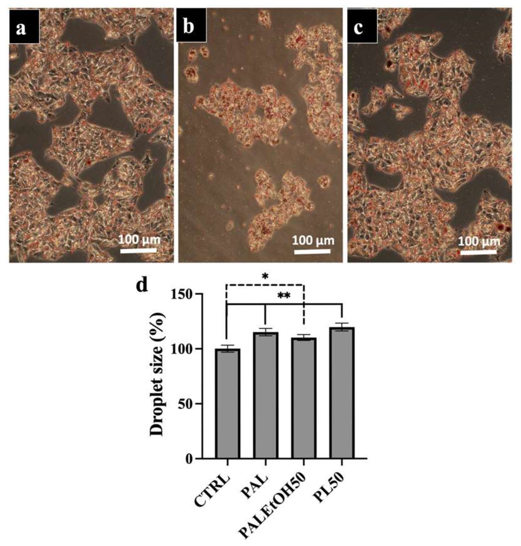 2.5. Effect of NL and PL at a Concentration of 50 µg/mL (NL50 and PL50) on Lipid Droplet Size in HepG2 Cells