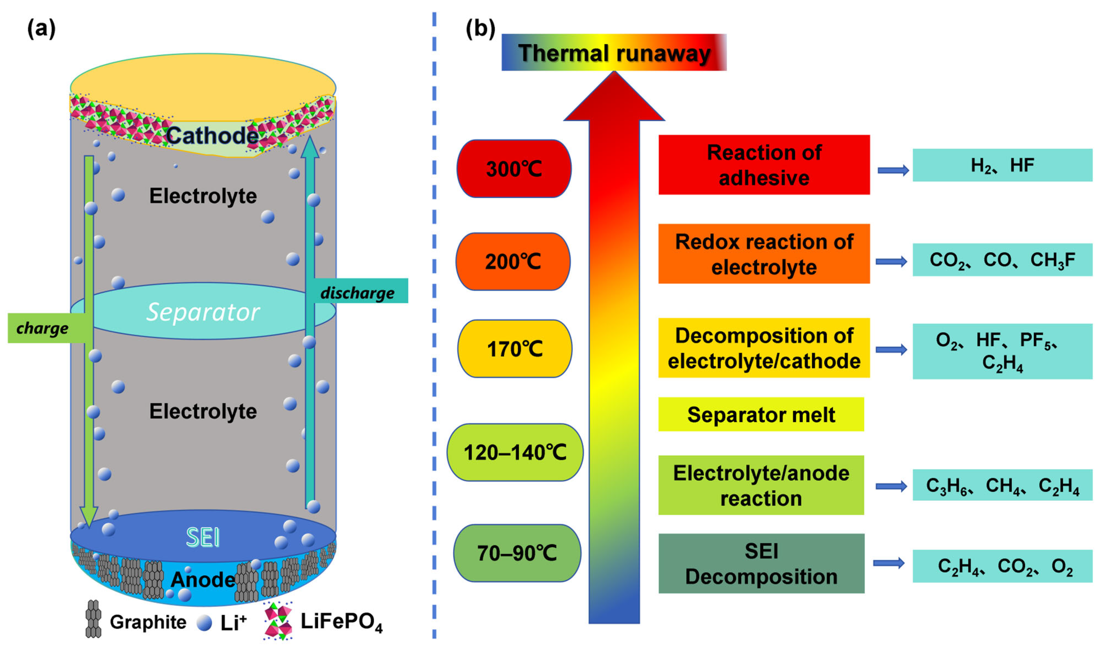- Qian, Y.; Zhao, Y.; Li, Z.; Wang, Q.; Zhao, Y. Gas detection technology for thermal runaway of lithium-ion batteries. Front. Phys. 2025, 13, 1615872. [Google Scholar] [CrossRef]