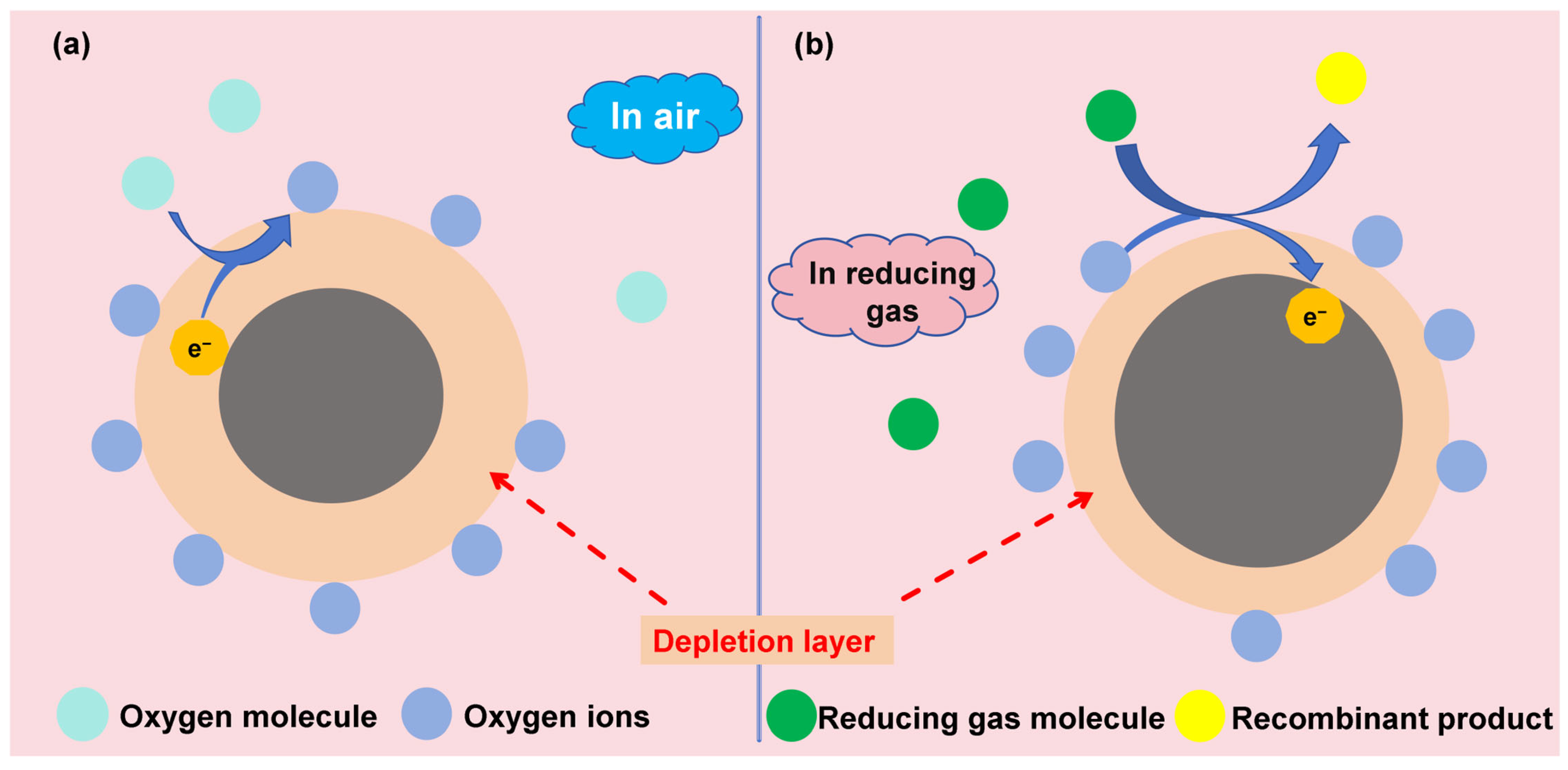 - Ji, H.; Zeng, W.; Li, Y. Gas sensing mechanisms of metal oxide semiconductors: A focus review. Nanoscale 2019, 11, 22664–22684. [Google Scholar] [CrossRef] [PubMed]