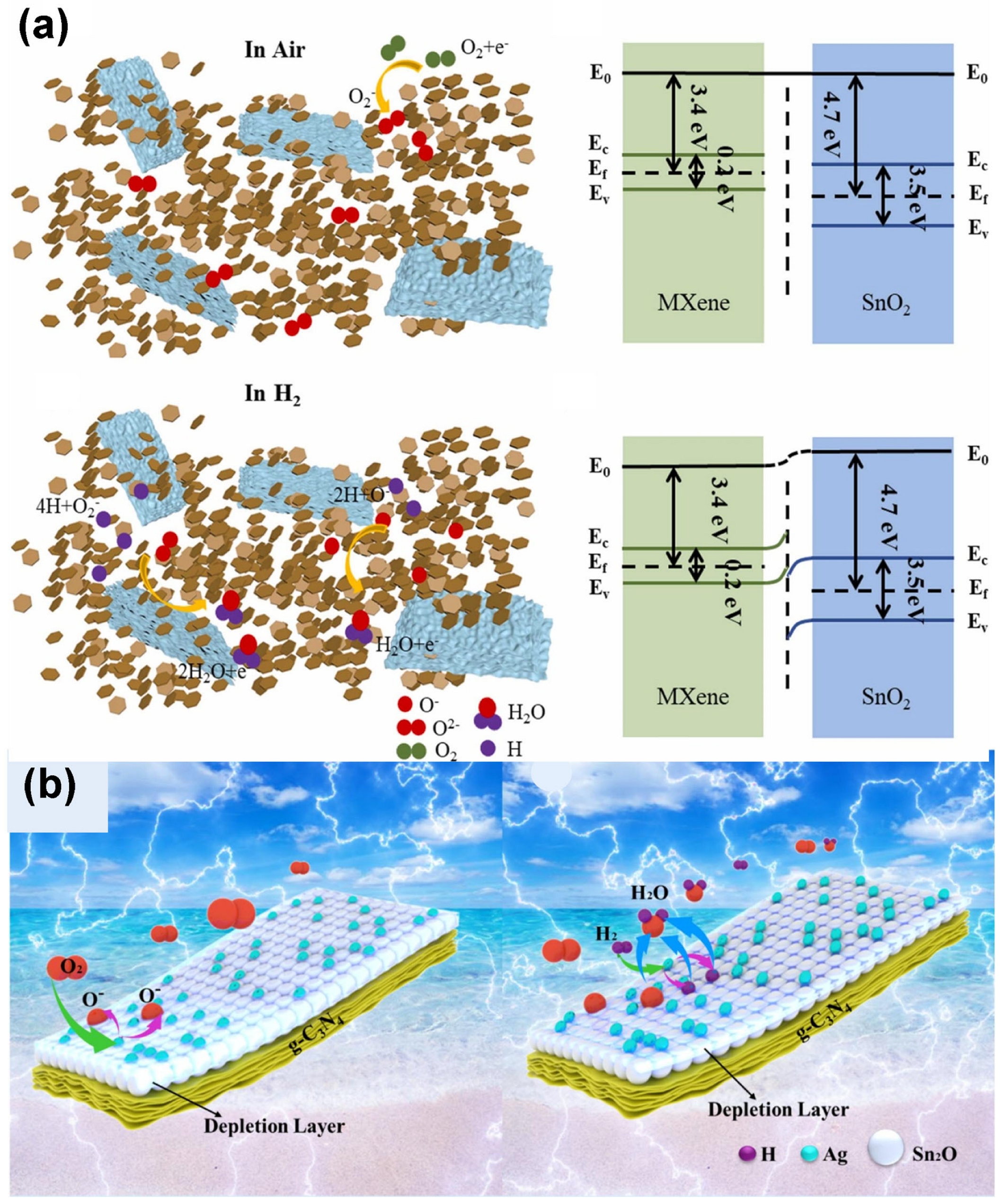 - Shao, X.; Zhang, D.; Tang, M.; Zhang, H.; Wang, Z.; Jia, P.; Zhai, J. Amorphous Ag catalytic layer-SnO2 sensitive layer-graphite carbon nitride electron supply layer synergy-enhanced hydrogen gas sensor. Chem. Eng. J. 2024, 495, 153676. [Google Scholar] [CrossRef]