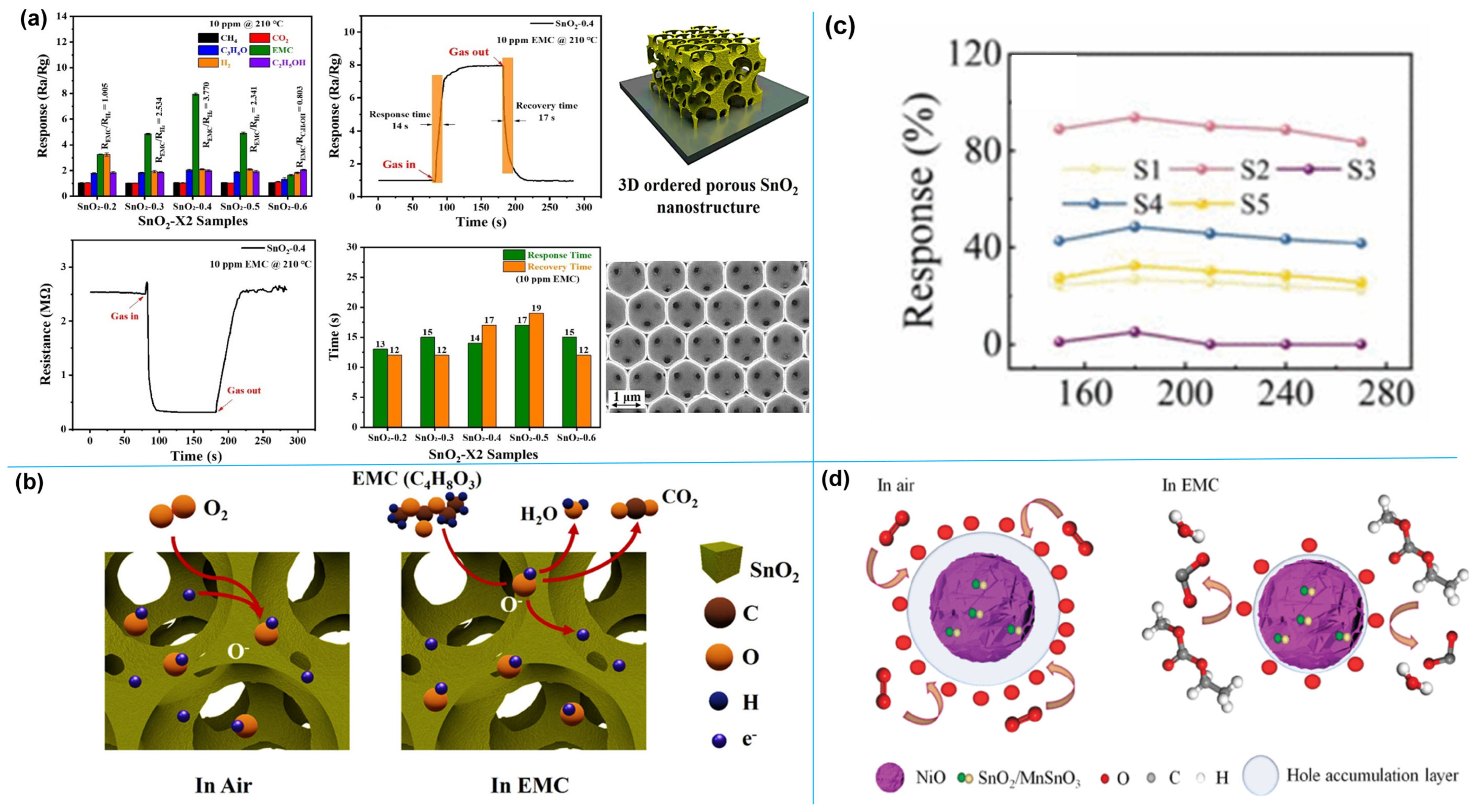 - Cao, P.; Qu, L.; Jia, F.; Zeng, Y.; Zhu, D.; Wang, C.; Han, S.; Fang, M.; Liu, X.; Liu, W. Three-Dimensional Ordered Porous SnO2 Nanostructures Derived from Polystyrene Sphere Templates for Ethyl Methyl Carbonate Detection in Battery Safety Applications. Nanomaterials 2025, 15, 1150. [Google Scholar] [CrossRef] [PubMed]