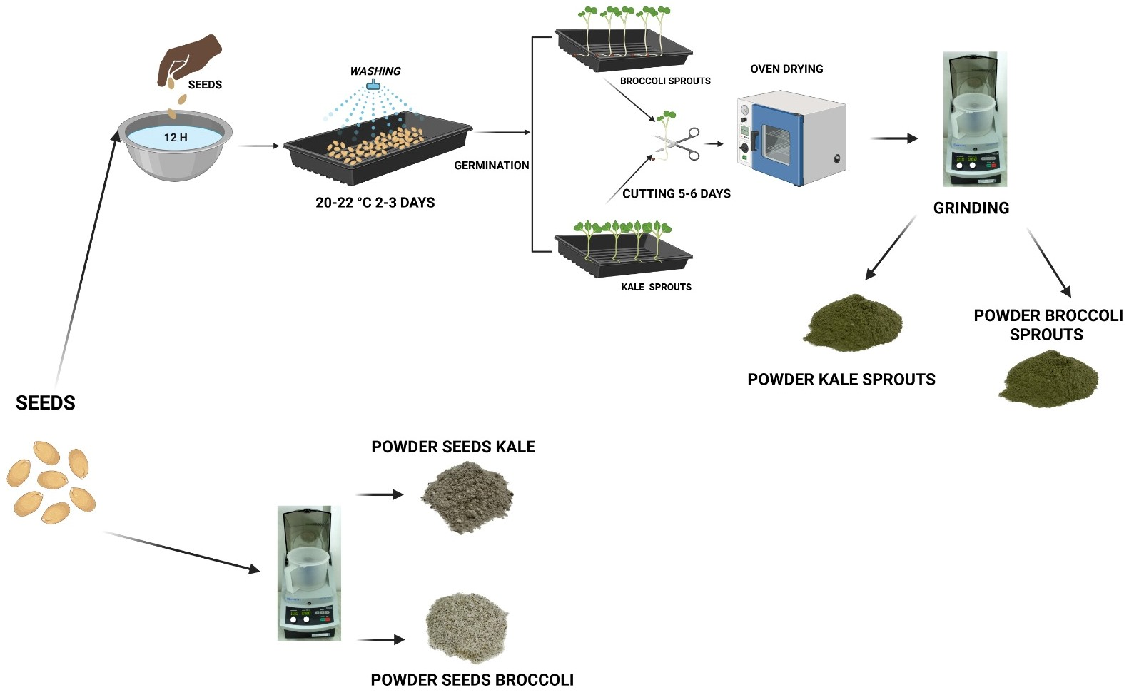 2.3. Evaluation of the Nutritional Composition of Kale and Broccoli Seed and Sprout Powders