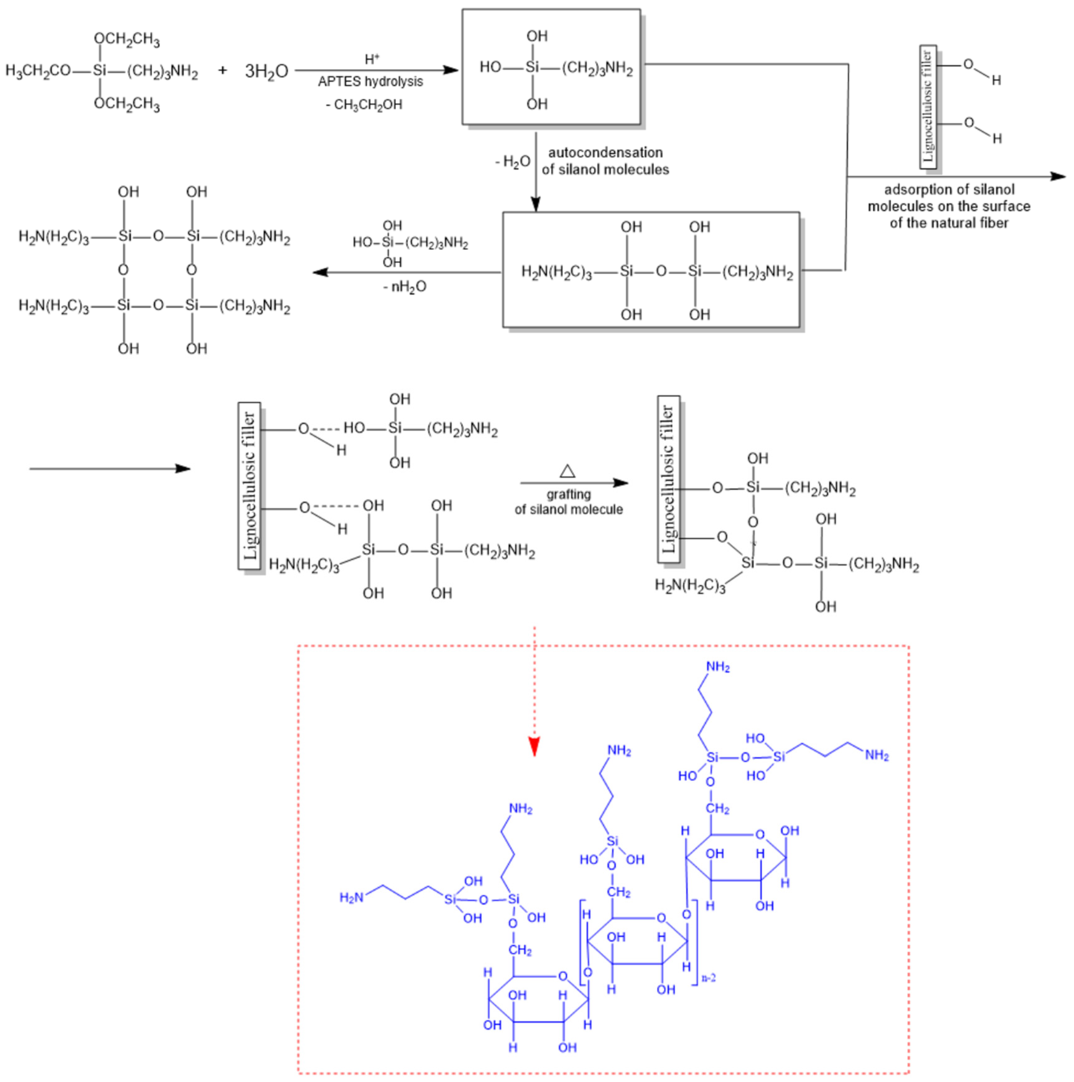 - Wang, M.; Yu, T.; Feng, Z.; Sun, J.; Gu, X.; Li, H.; Zhang, S. Preparation of 3-aminopropyltriethoxy silane modified cellulose microcrystalline and their applications as flame retardant and reinforcing agents in epoxy resin. Polym. Adv. Technol. 2020, 31, 1340–1348. [Google Scholar] [CrossRef]