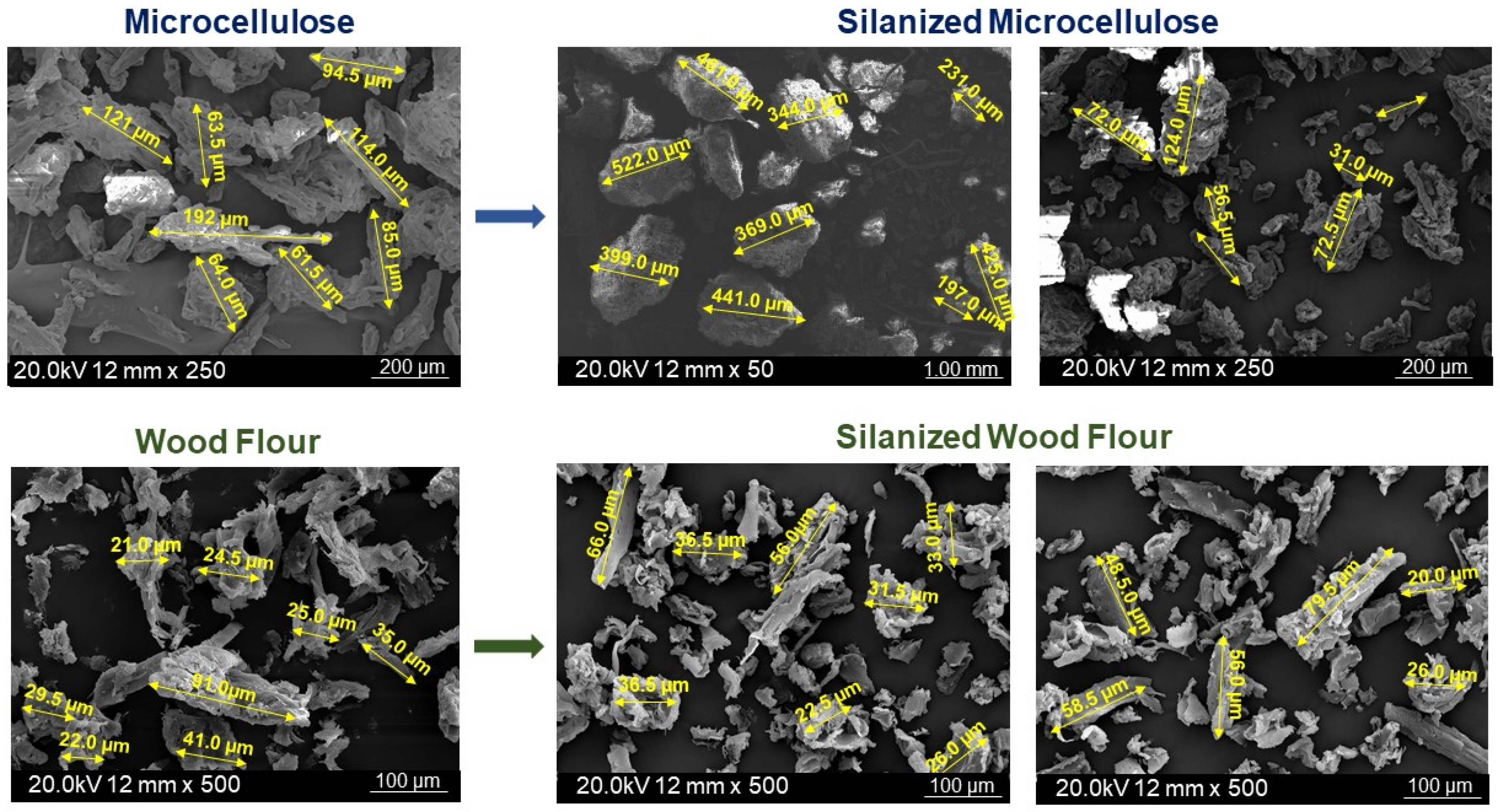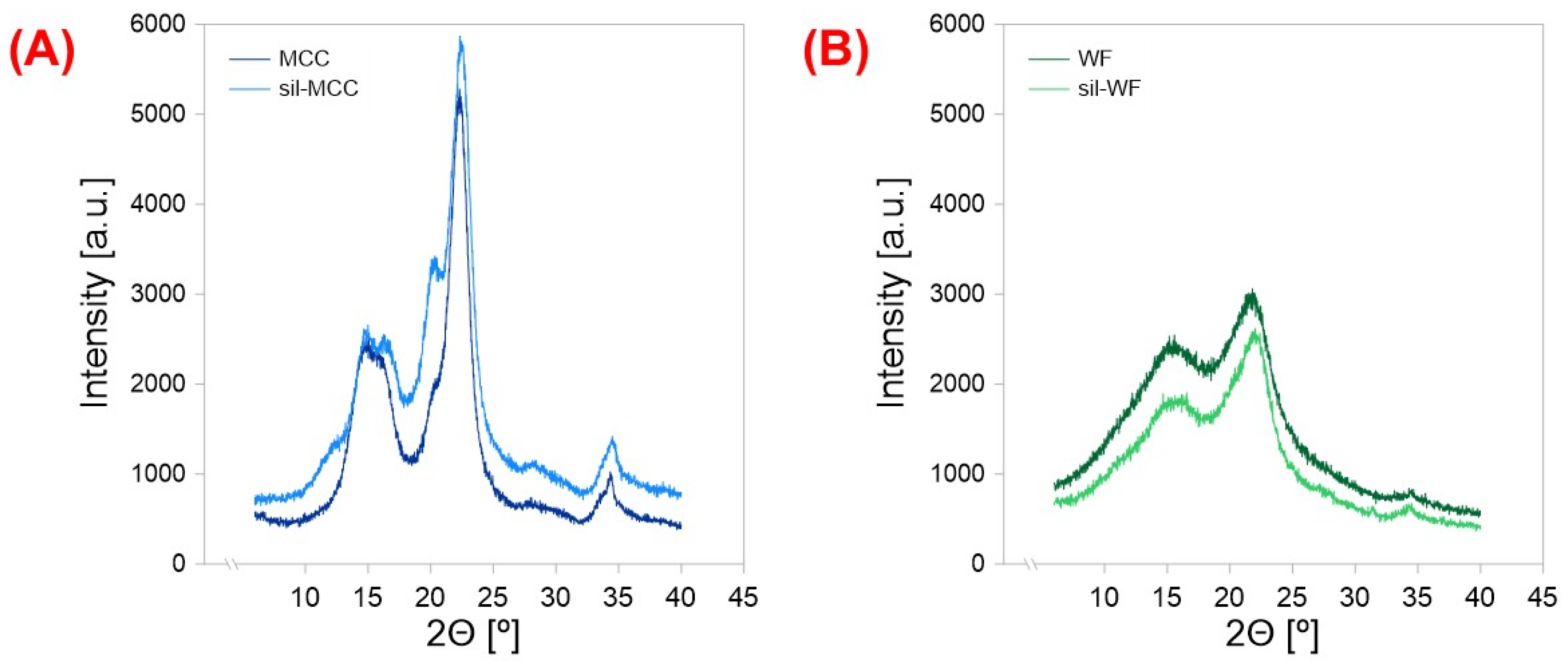 - Neves, R.M.; Ornaghi, H.L., Jr.; Zattera, A.J.; Amico, S.C. The influence of silane modification on microcrystalline characteristics. Carbohydr. Polym. 2020, 230, 115595. [Google Scholar] [CrossRef]