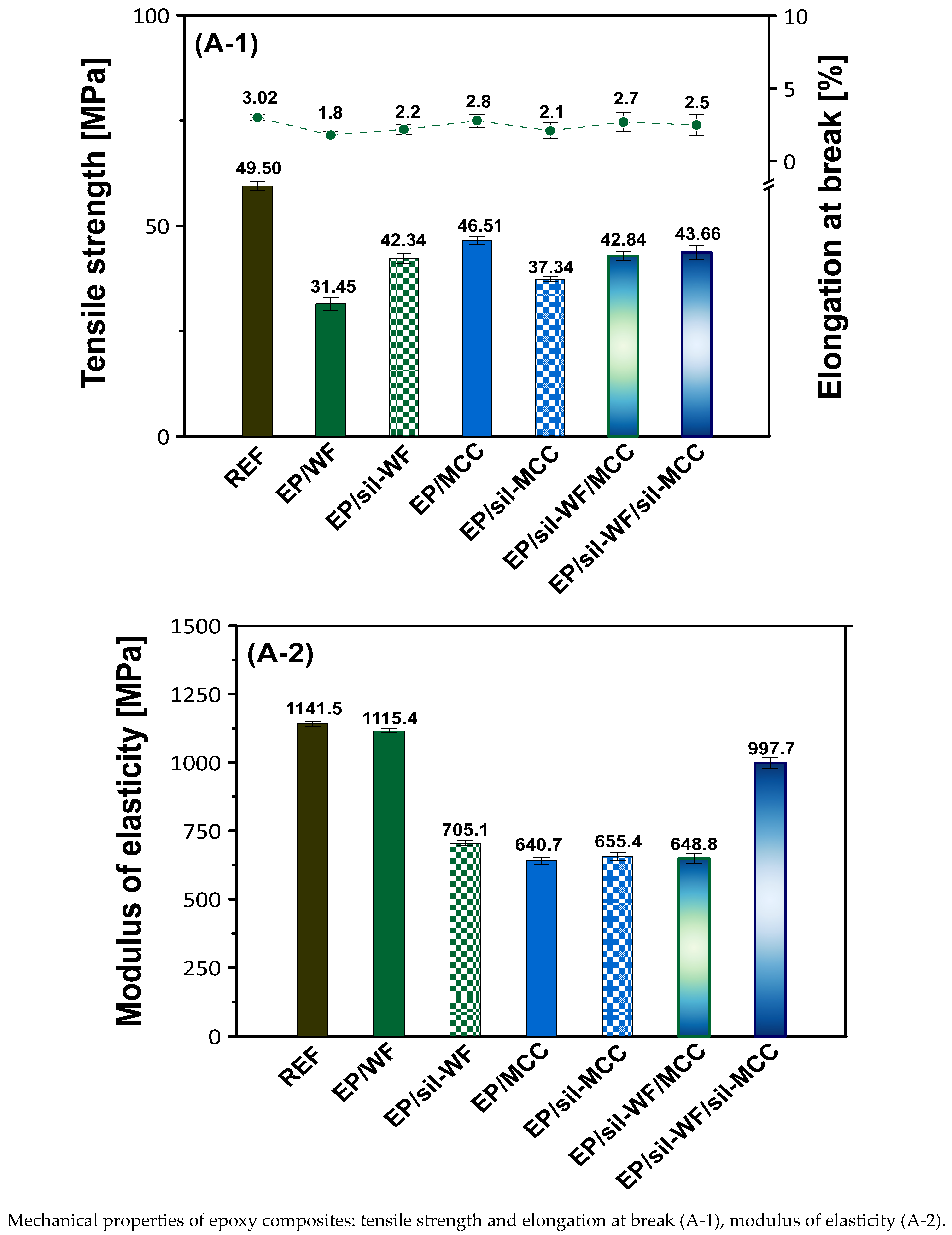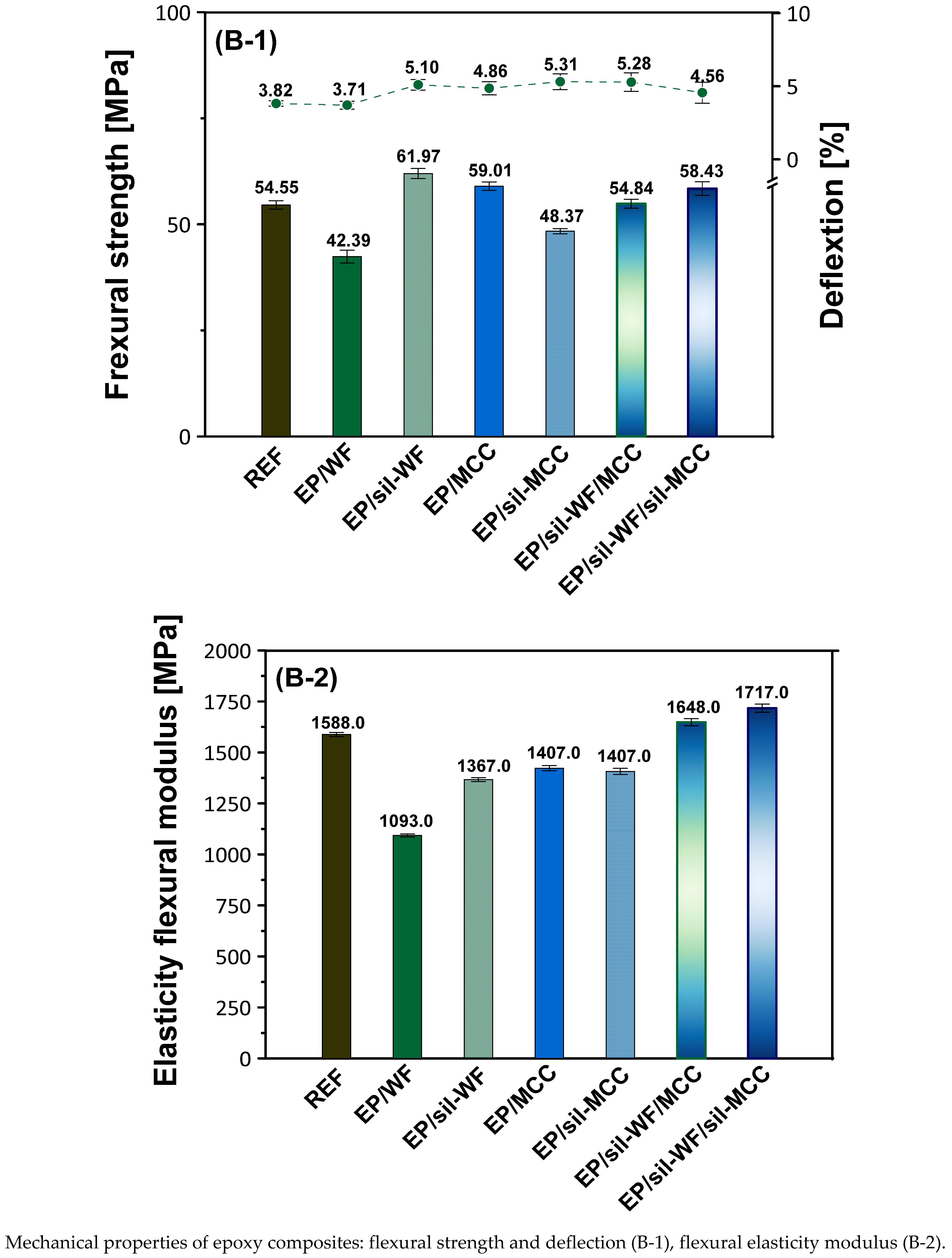 | EP/sil-WF/sil-MCC | Cured epoxy composite based on low-molecular-weight epoxy resin Epidian 6 filled with 4 wt.% of silanized wood flour and 1 wt.% of silanized microcrystalline cellulose. |