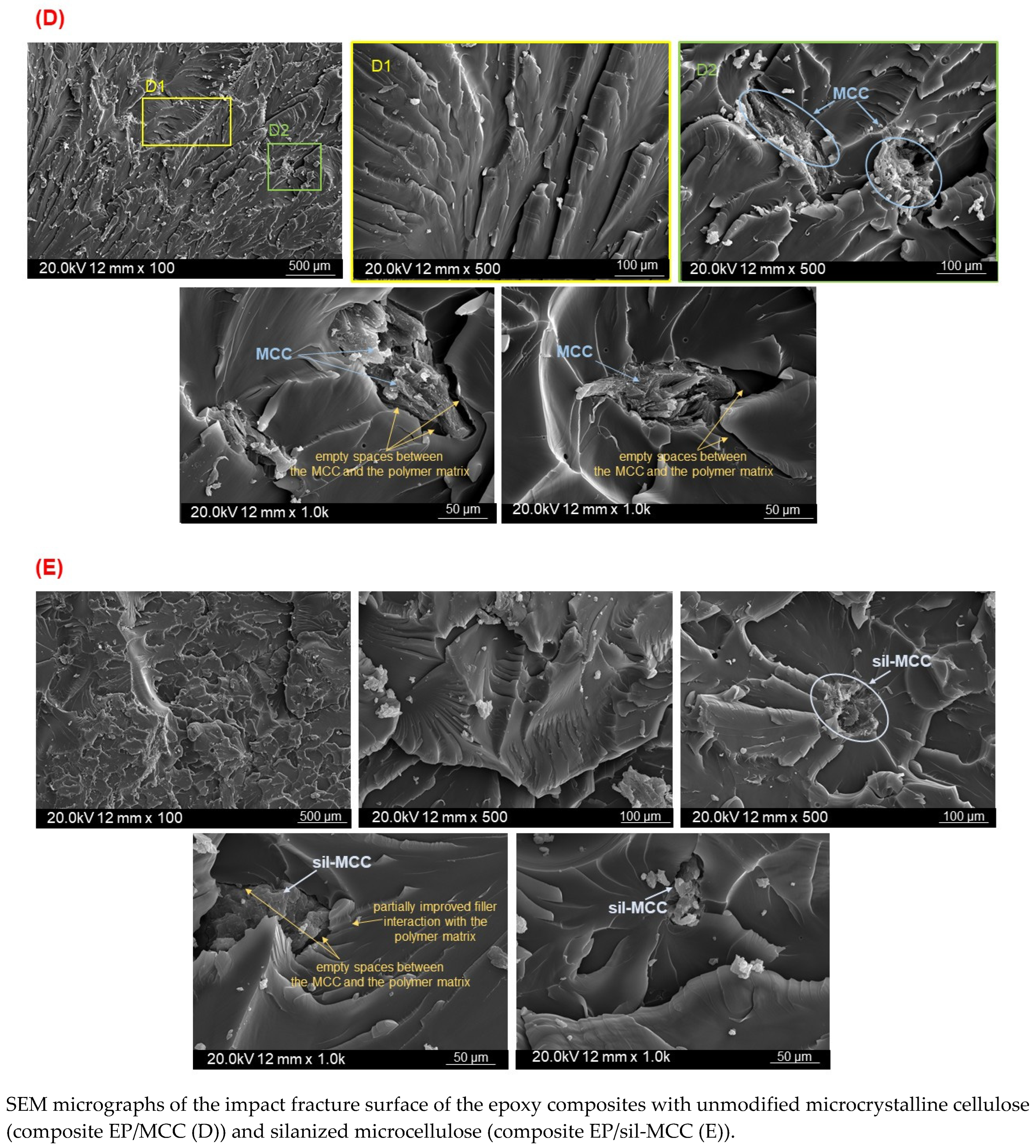 | EP/sil-MCC | Cured epoxy composite based on low-molecular-weight epoxy resin Epidian 6 filled with 1 wt.% of silanized microcrystalline cellulose. |