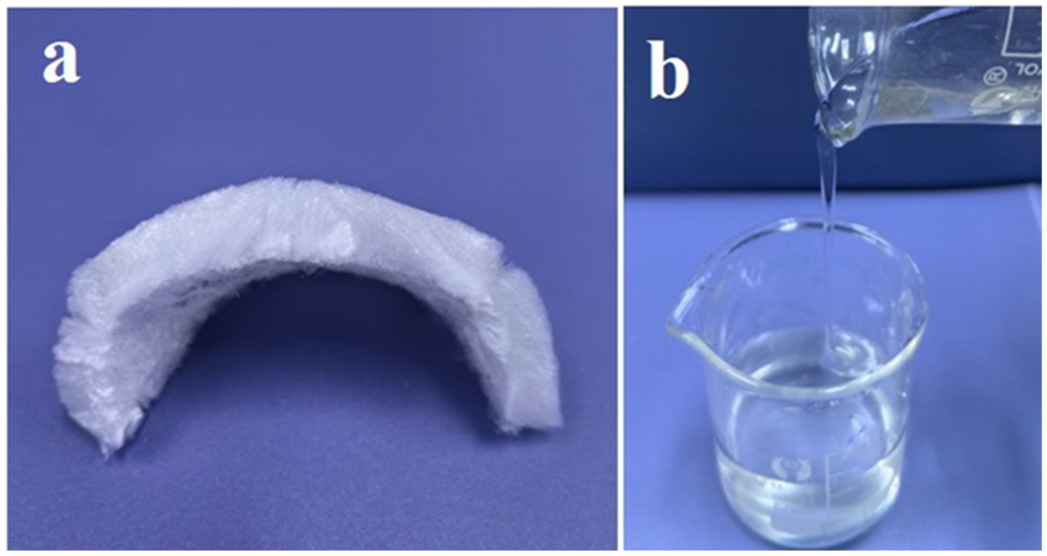 - He, M.; Huang, Y.; Cui, Z.; Yao, W.; Xu, J.; Li, Q.; Chen, L. Flexible and exceptional hemostatic chitin sponges with controllable structure and their properties. Eur. Polym. J. 2025, 241, 114405. [Google Scholar] [CrossRef]