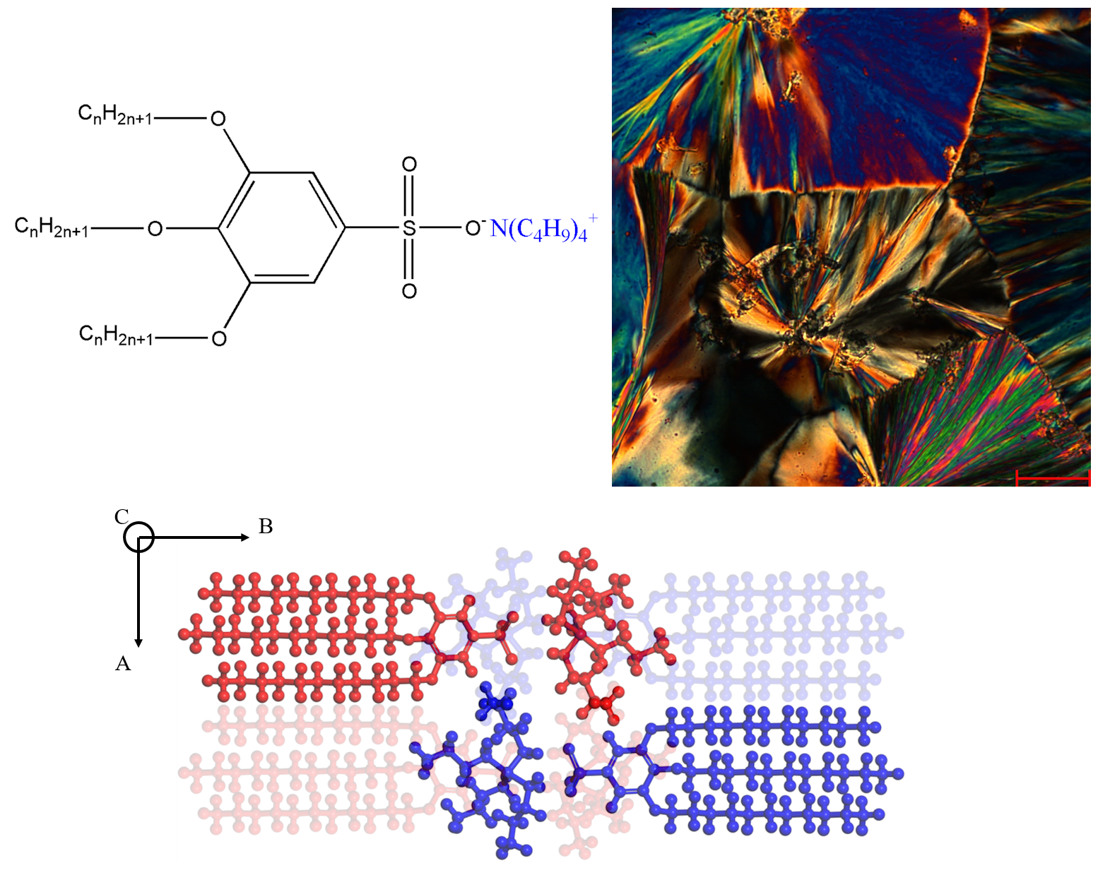 - Shcherbina, M.A.; Bakirov, A.V.; Yakunin, A.N.; Beginn, U.; Yan, L.; Möller, M.; Chvalun, S.N. The Effect of the Shape of the Mesogenic Group on the Structure and Phase Behavior of 2,3,4-Tris(Dodecyloxy)Benzenesulfonates with Alkaline Cations. Soft Matter 2014, 10, 1746–1757. [Google Scholar] [CrossRef]