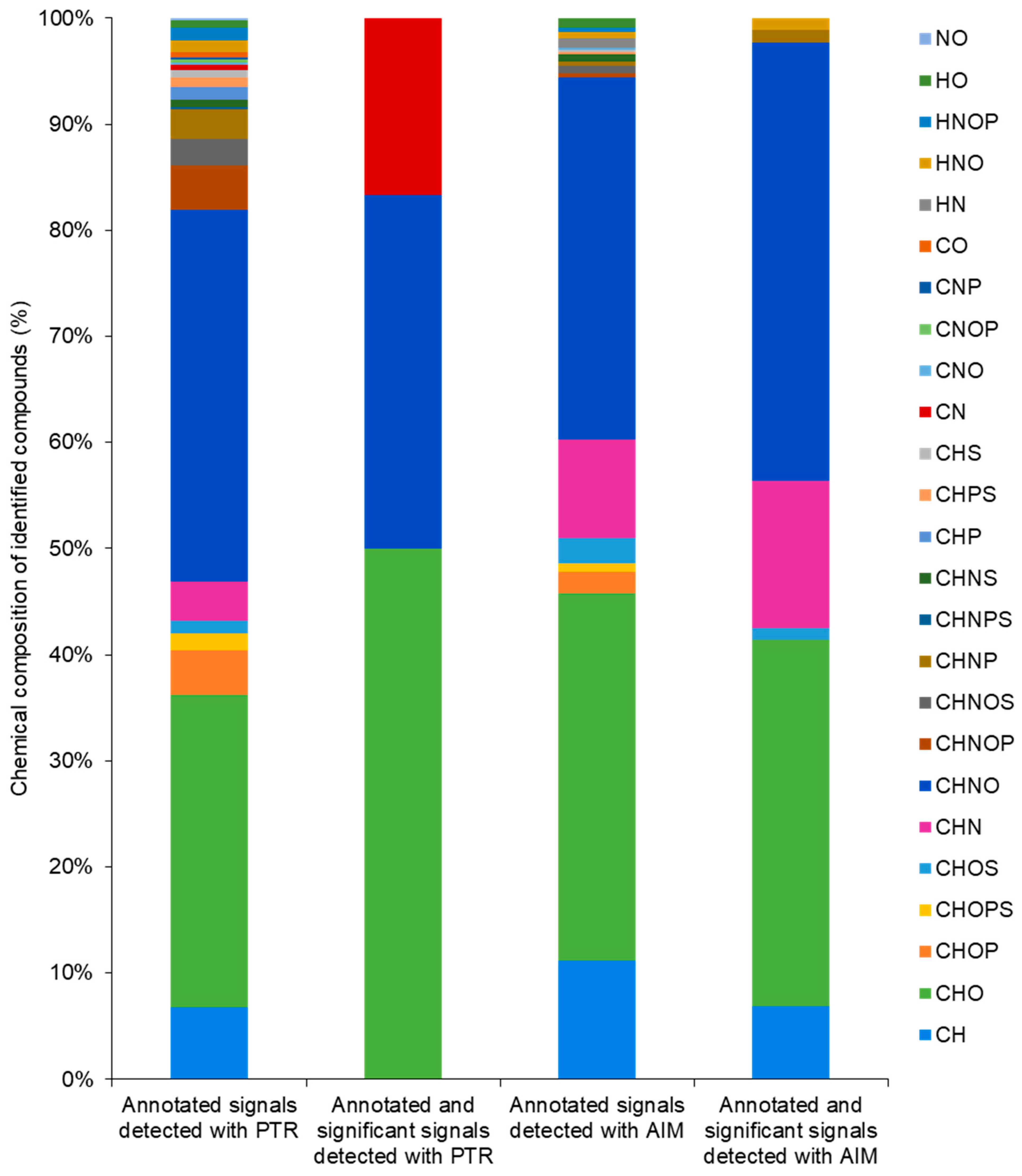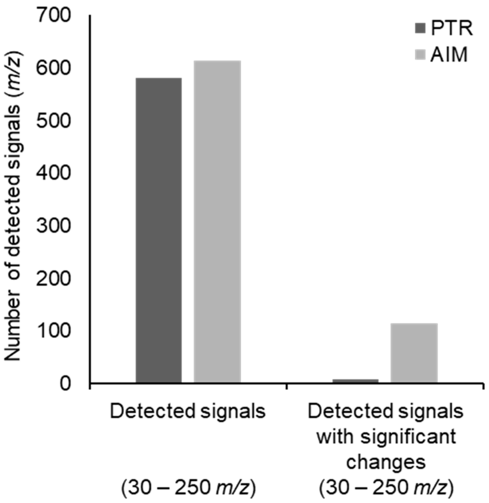 4.2.2. Volatile Organic Compounds Analysis with the AIM-TOF-MS