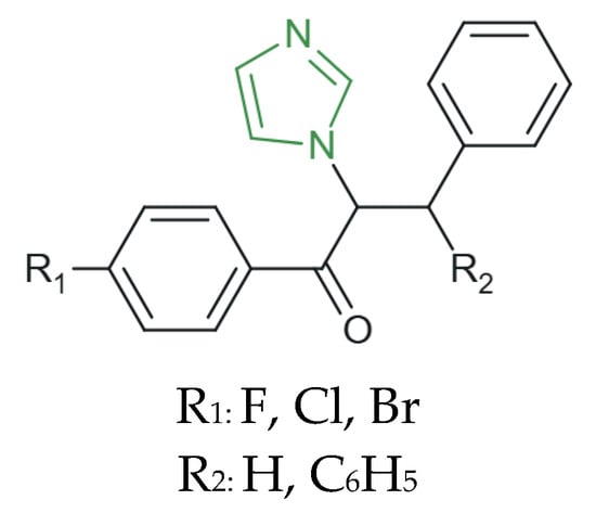 Antifungal imidazoles constitute an important and continuously expanding class [57,58,59,60,61] and currently, they are used in a variety of pharmaceutical forms (lotions, tablets, creams, etc.) in relatively low concentrations of 1–2% [64,65,66,67,68].