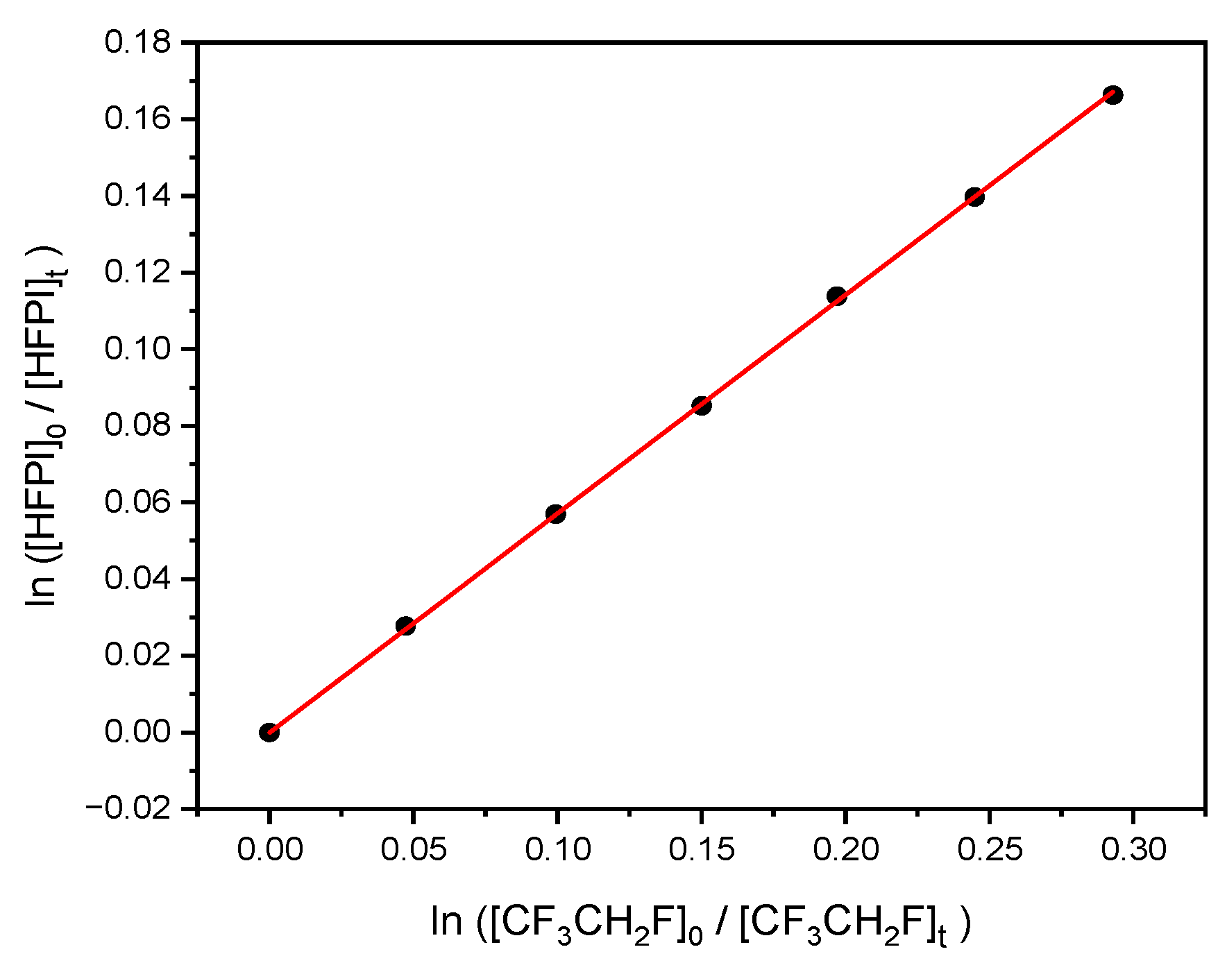 3.3. Atmospheric Lifetime of HFPI and Its Global Warming Potential
