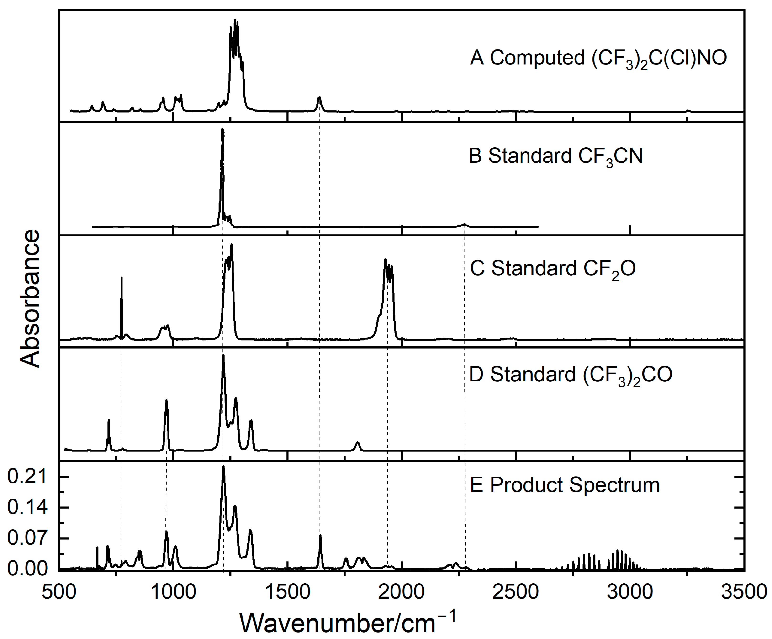 - Ernsting, N.P.; Pfab, J. The gas phase i.r. spectra of some perhalonitrosomethanes. Spectrochim. Acta Part A 1980, 36, 75–84. [Google Scholar] [CrossRef]