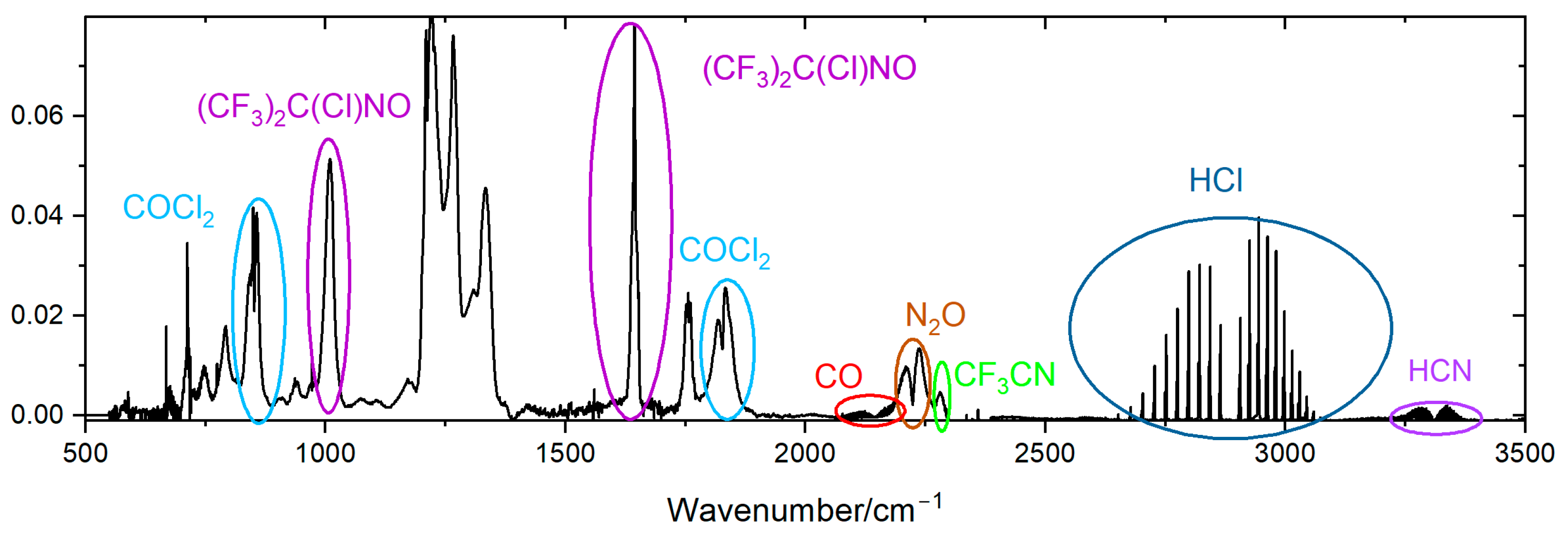 - Brauer, C.S.; Johnson, T.J.; Blake, T.A.; Sharpe, S.W.; Sams, R.L.; Tonkyn, R.G. The Northwest Infrared (NWIR) gas-phase spectral database of industrial and environmental chemicals: Recent updates. In Proceedings of SPIE, Proceedings of the Advanced Environmental, Chemical, and Biological Sensing Technologies XI, Baltimore, MD, USA, 5–6 May 2014; Vo-Dinh, T., Lieberman, R.A., Gauglitz, G.G., Eds.; SPIE: Bellingham, MD, USA, 2014. [Google Scholar]
