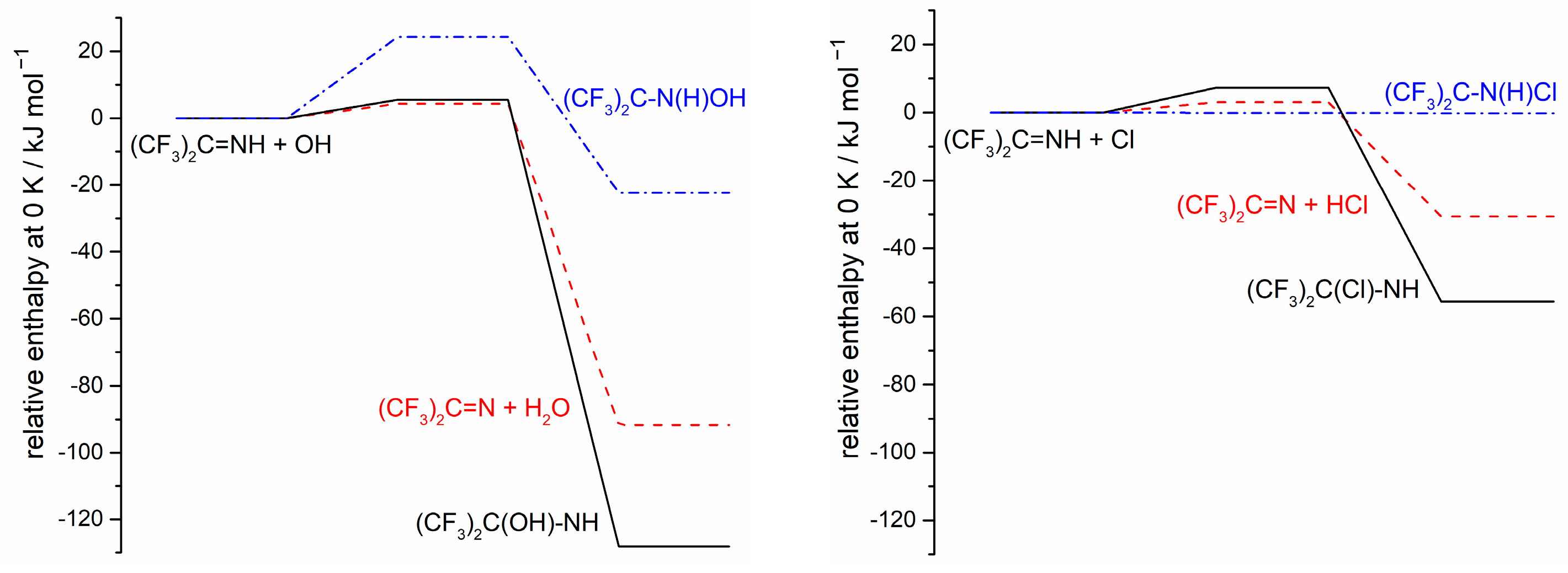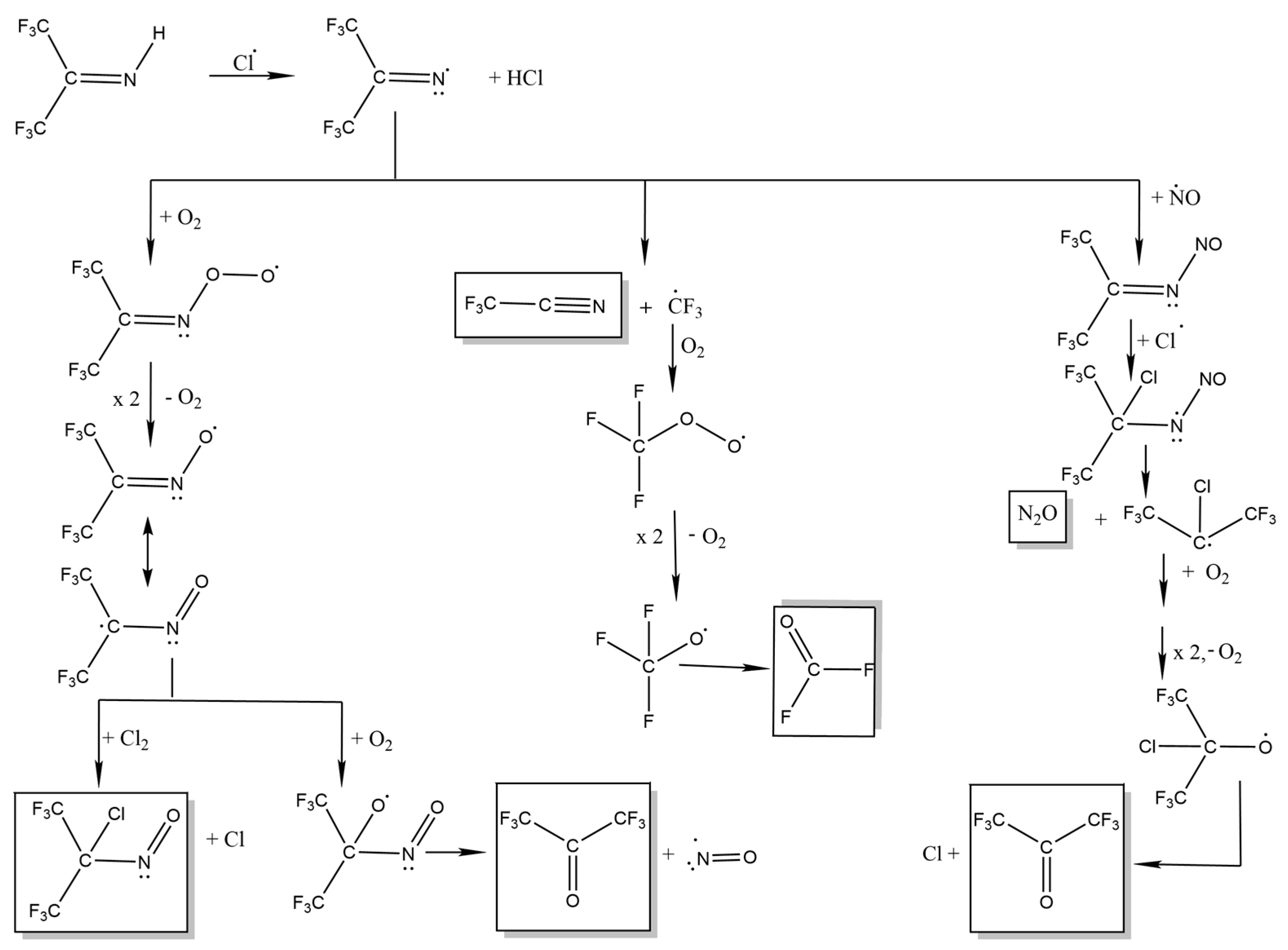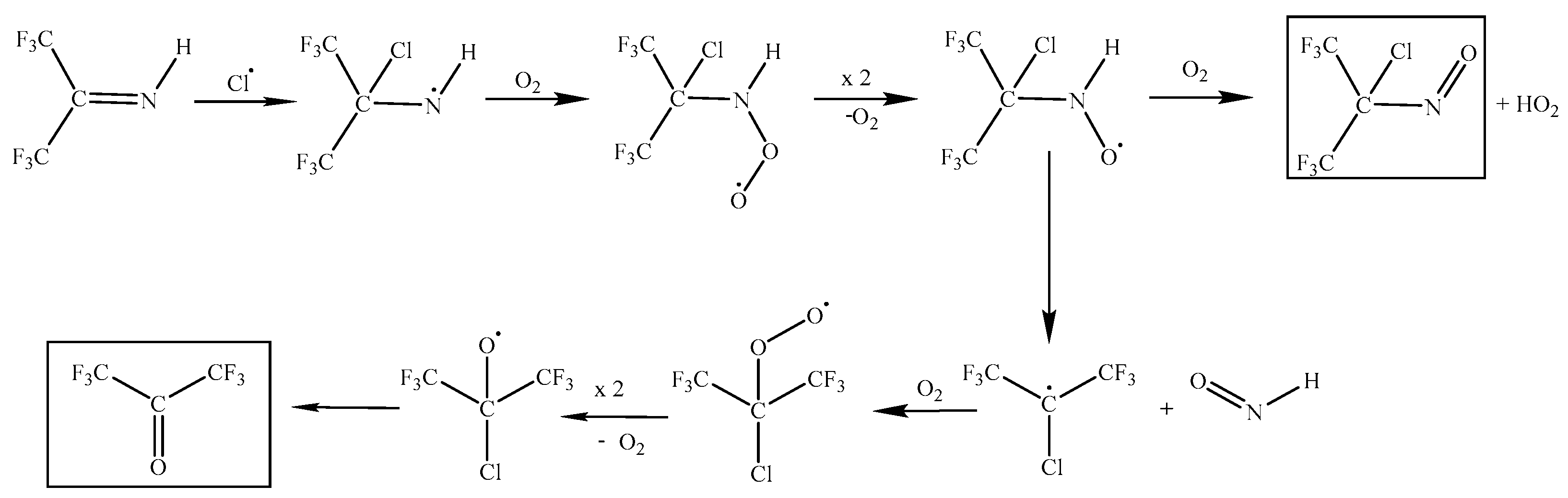 - Toby, F.S.; Toby, S.; Pritchard, G.O. Photochemistry of hexafluoroacetone imine. J. Amer. Chem. Soc. 1972, 94, 4441–4445. [Google Scholar] [CrossRef]