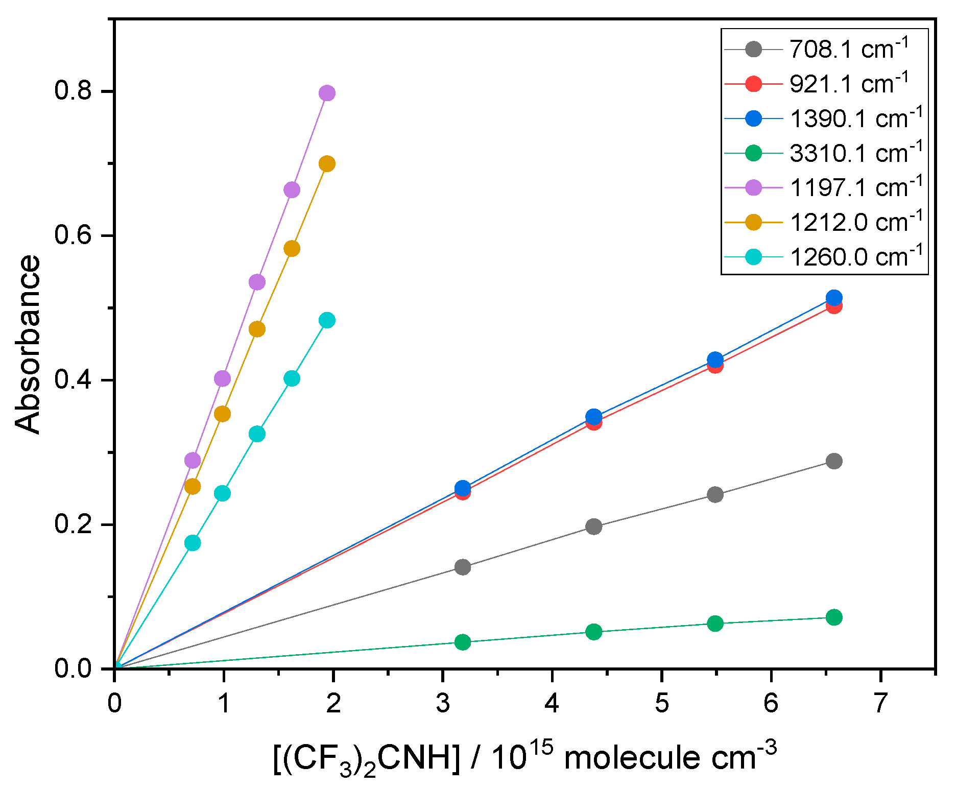 Chicago/Turabian StyleSavi, Savi, and Paul Marshall. 2026. "Measurements of Radical Reactivity with an Imine, (CF3)2CNH: Rate Constants for Chlorine Atoms and Hydroxyl Radicals and the Global Warming Potential" Molecules 31, no. 3: 424. https://doi.org/10.3390/molecules31030424