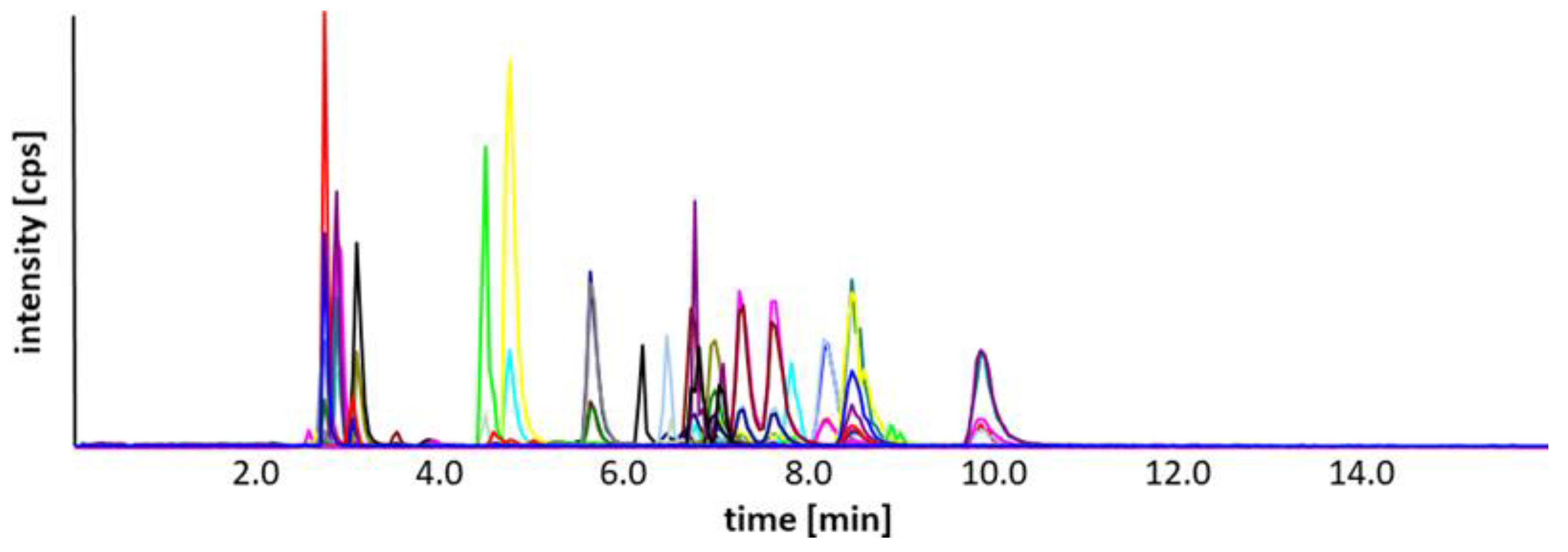 4.4. Liquid Chromatography–Differential Ion Mobility–Tandem Mass Spectrometry (LC-DMS-MS/MS)