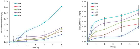 Dissolution profiles (isoquercetin, ferulic acid, p-coumaric acid) and results of HPLC analysis.