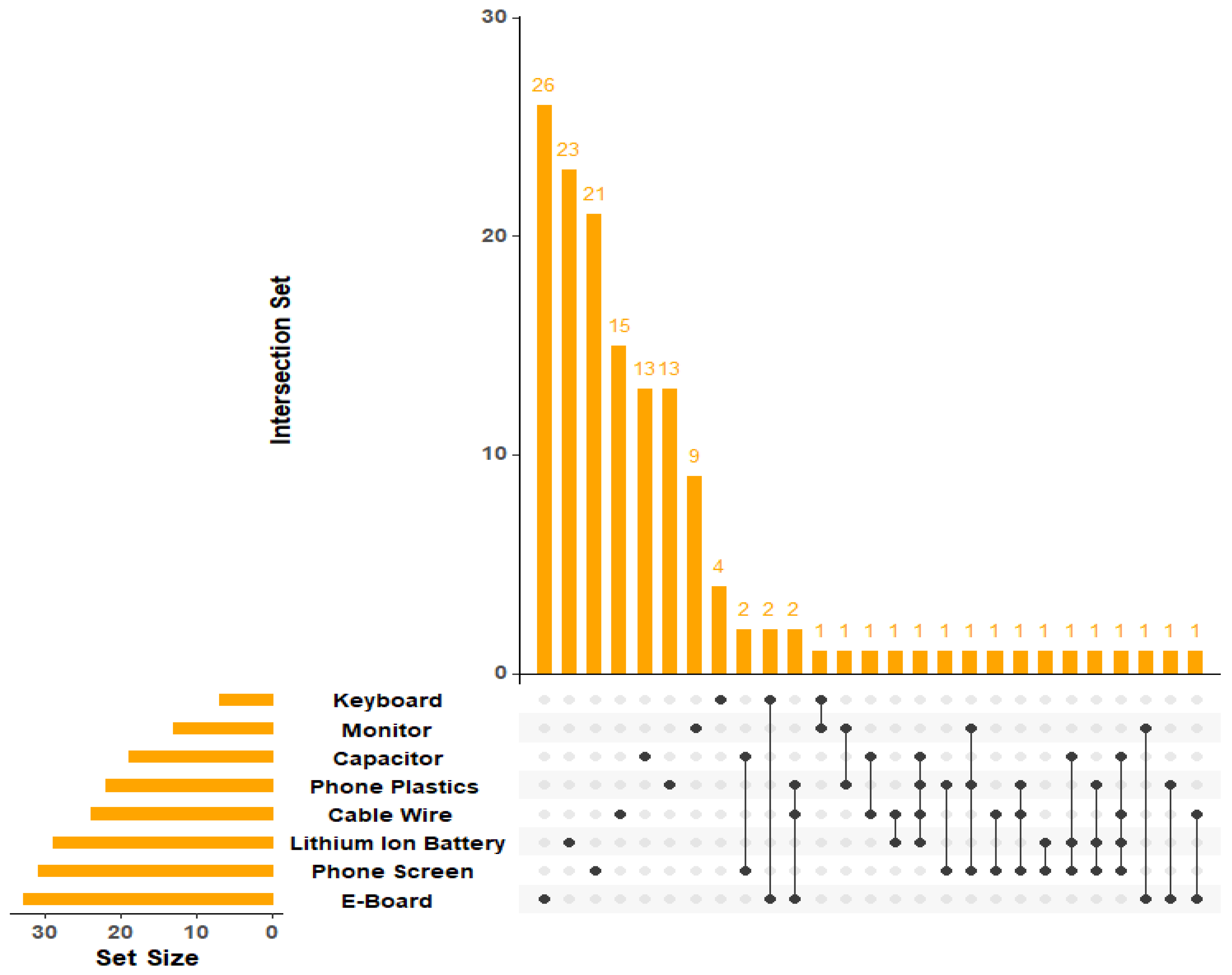 - Srivastava, A.N.; Sikarwar, V.S.; Bisen, D.; Fathi, J.; Maslani, A.; Lopez Nino, B.N.; Barmavatu, P.; Kaviti, A.K.; Pohořelý, M.; Buryi, M. E-Waste Unplugged: Reviewing Impacts, Valorization Strategies and Regulatory Frontiers for Efficient E-Waste Management. Processes 2025, 13, 2014. [Google Scholar]
