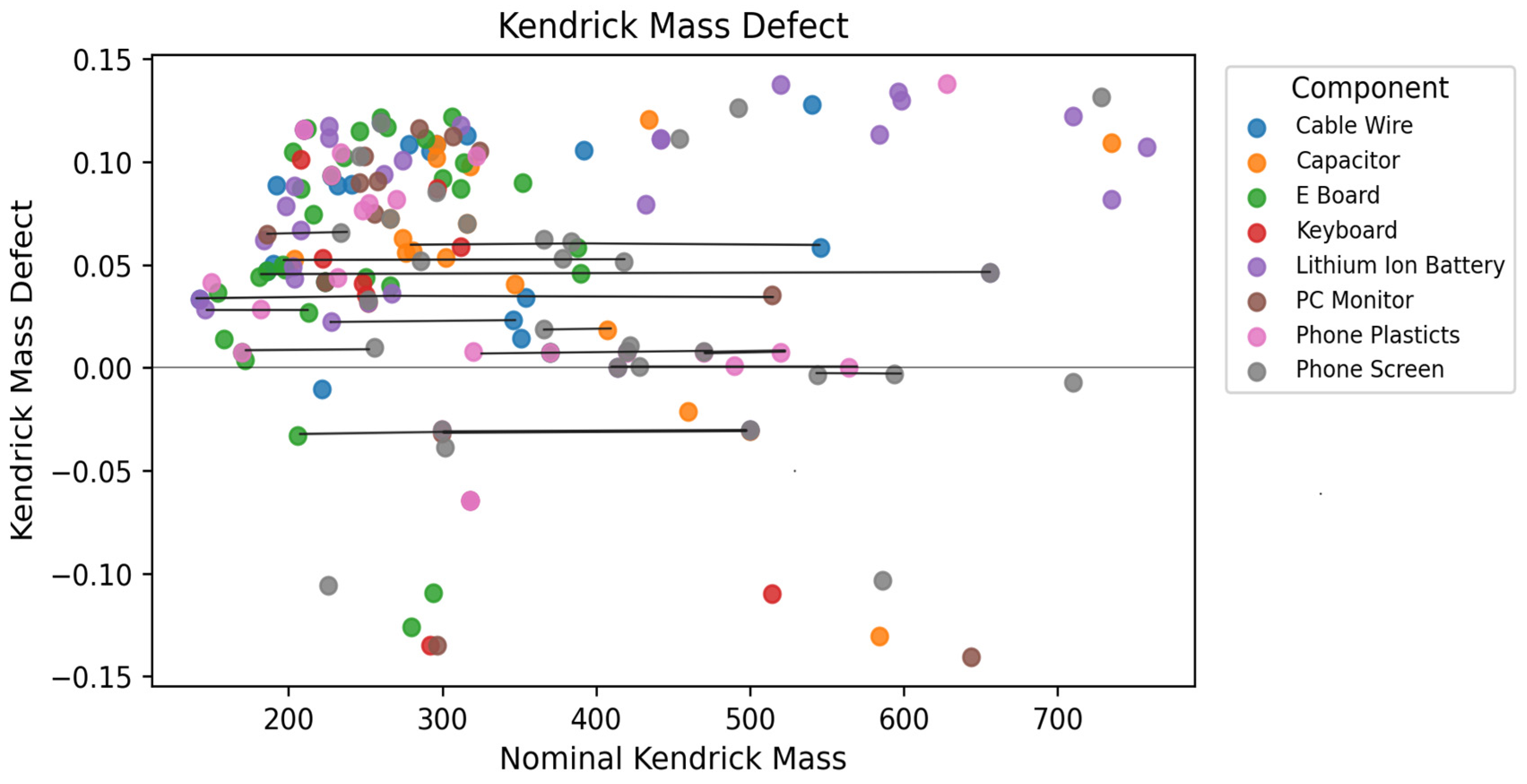 - Bugsel, B.; Zwiener, C. LC-MS screening of poly- and perfluoroalkyl substances in contaminated soil by Kendrick mass analysis. Anal. Bioanal. Chem. 2020, 412, 4797–4805. [Google Scholar] [CrossRef]