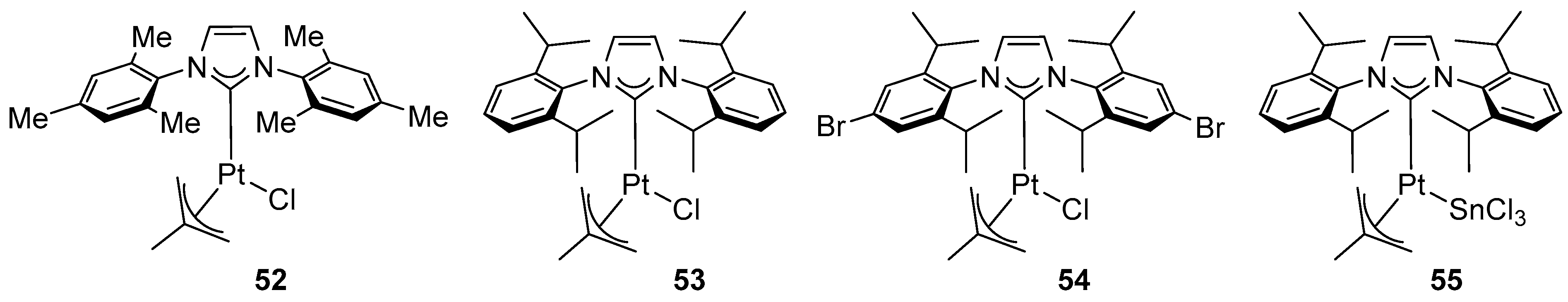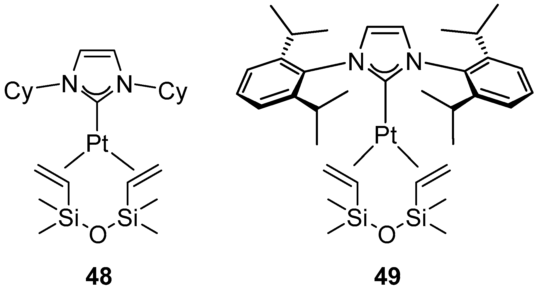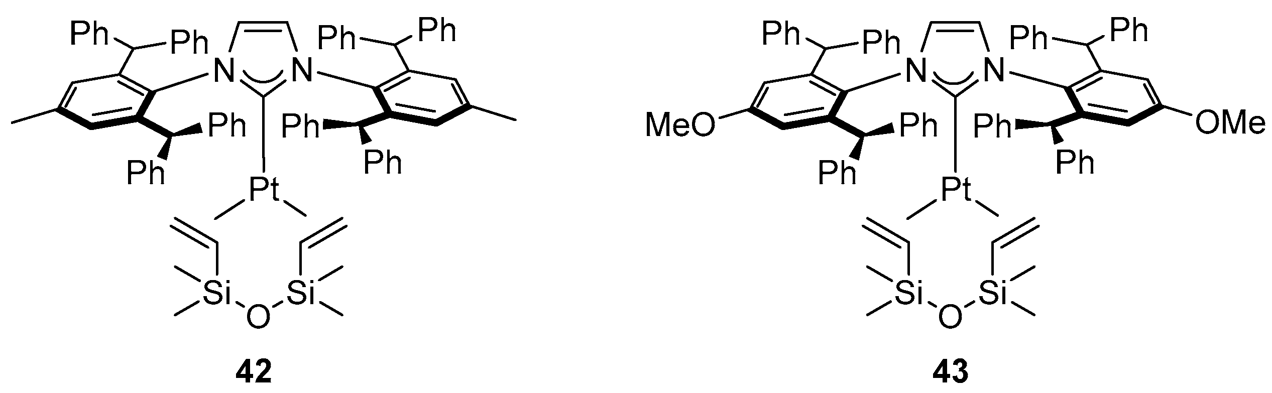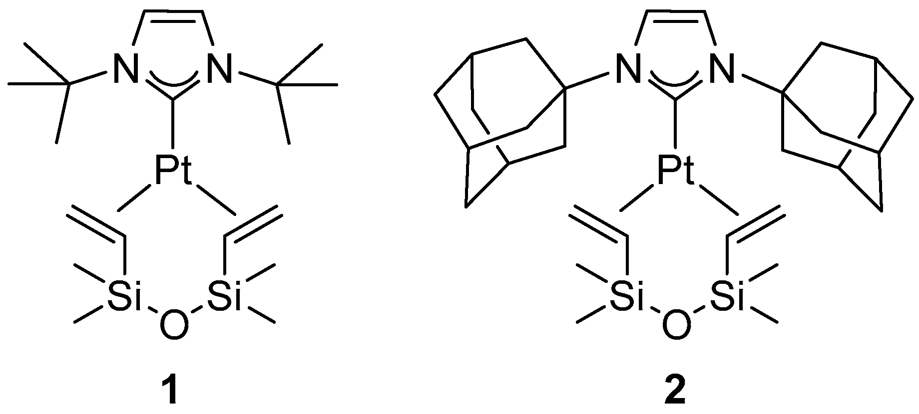 - Maliszewski, B.P.; Casillo, E.; Scattolin, T.; Nahra, F.; Cazin, C.S.J.; Nolan, S.P. Unveiling the Potential of Platinum in Homogeneous Catalysis: A Review of Pt-NHC Chemistry and Pt-Catalysed Hydrosilylation Reactions: Part I. Johns. Matthey Technol. Rev. 2026, in press. [Google Scholar]