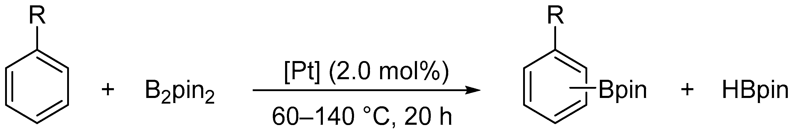 - Furukawa, T.; Tobisu, M.; Chatani, N. C–H Borylation by Platinum Catalysis. Bull. Chem. Soc. Jpn. 2017, 90, 332–342. [Google Scholar] [CrossRef]