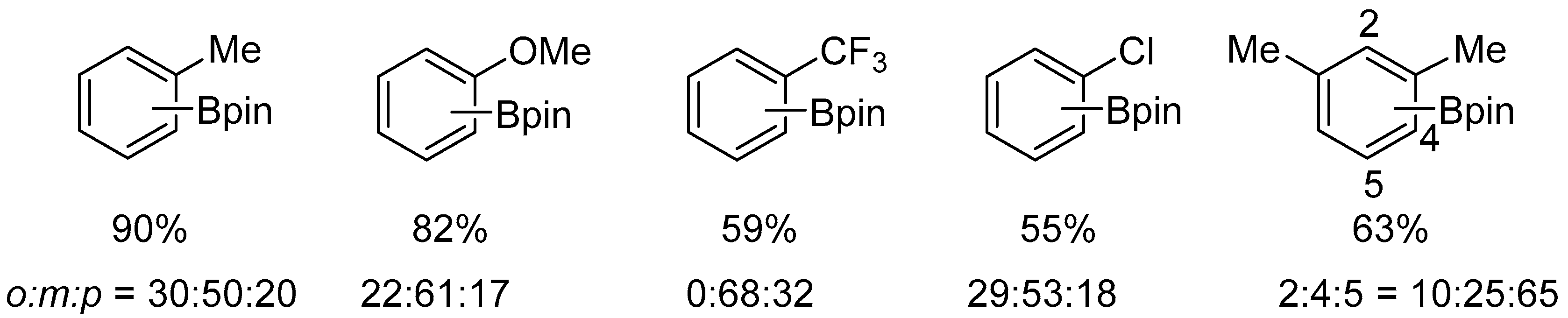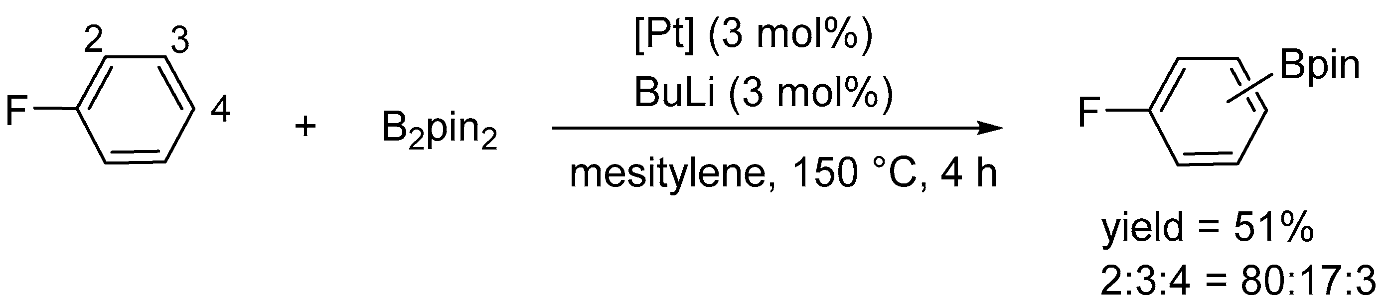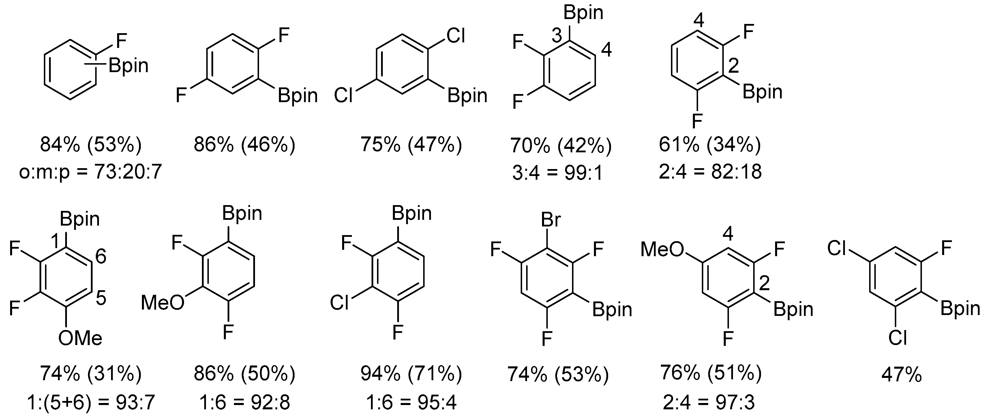 - Takaya, J.; Ito, S.; Nomoto, H.; Saito, N.; Kirai, N.; Iwasawa, N. Fluorine-Controlled C–H Borylation of Arenes Catalyzed by a PSiN-Pincer Platinum Complex. Chem. Commun. 2015, 51, 17662–17665. [Google Scholar] [CrossRef]