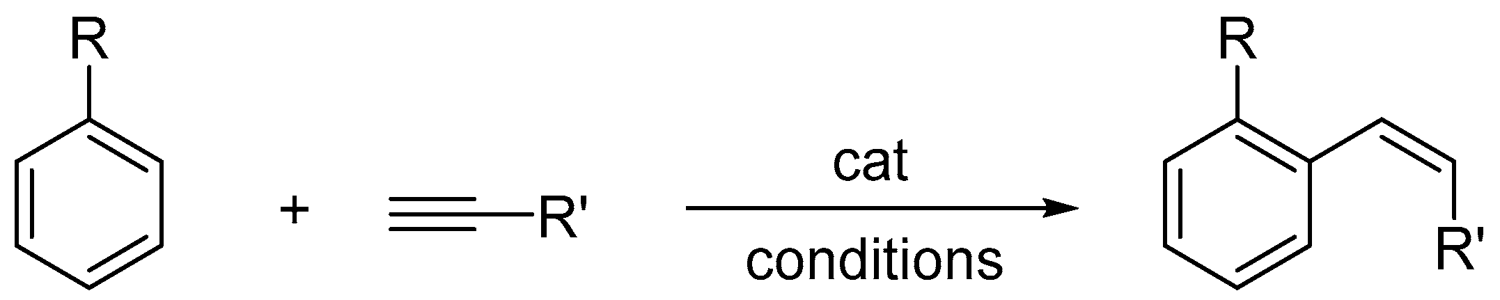 - Ackermann, L.; Gunnoe, T.B.; Habgood, L.G. (Eds.) Catalytic Hydroarylation of Carbon–Carbon Multiple Bonds; Wiley-VCH: Weinheim, Germany, 2018. [Google Scholar]
