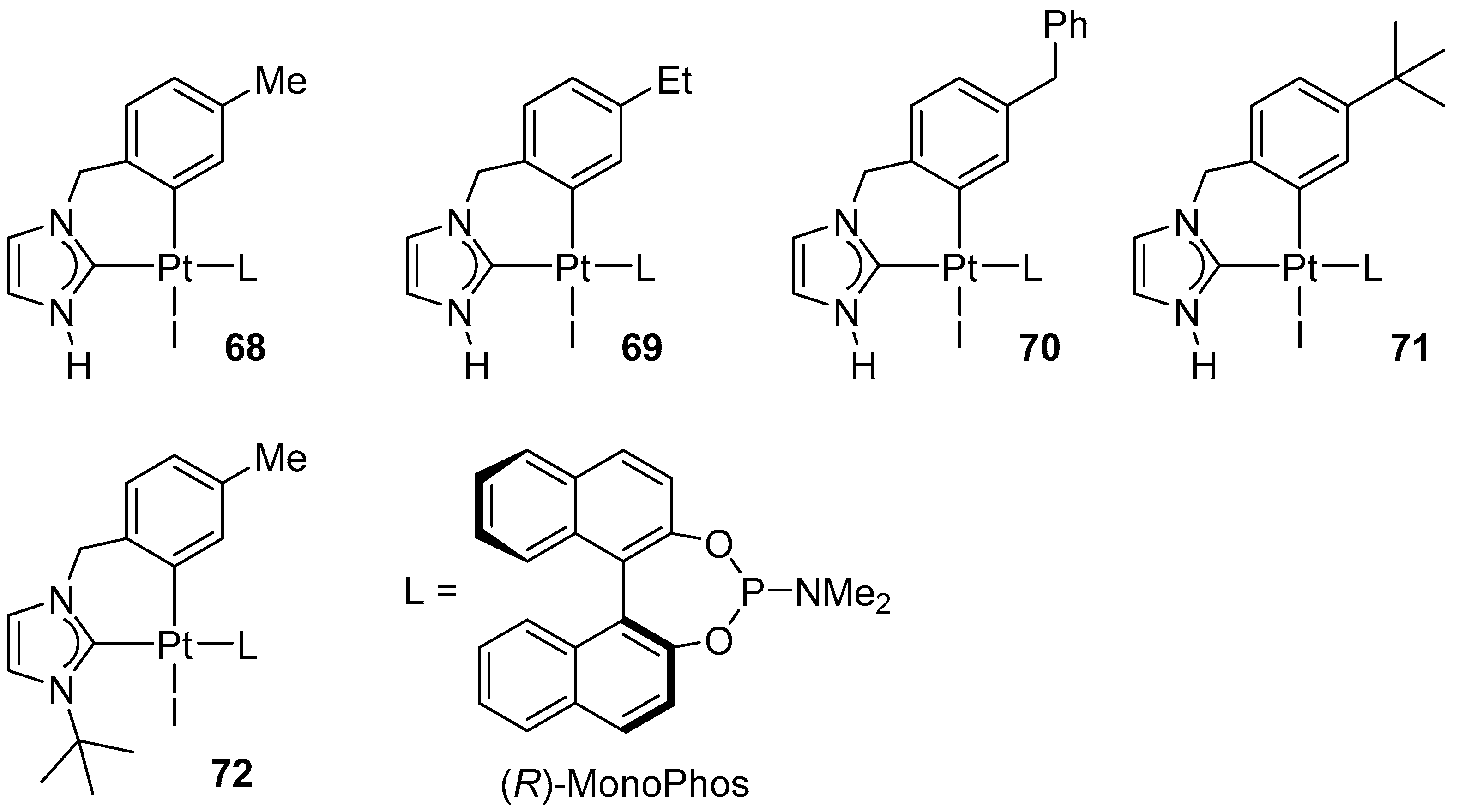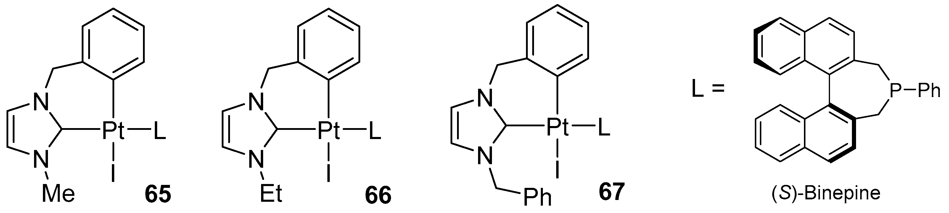 - Brissy, D.; Skander, M.; Retailleau, P.; Marinetti, A. N-Heterocyclic Carbenes in the Synthesis of Axially Chiral Square-Planar Platinum Complexes. Organometallics 2007, 26, 5782–5785. [Google Scholar] [CrossRef]