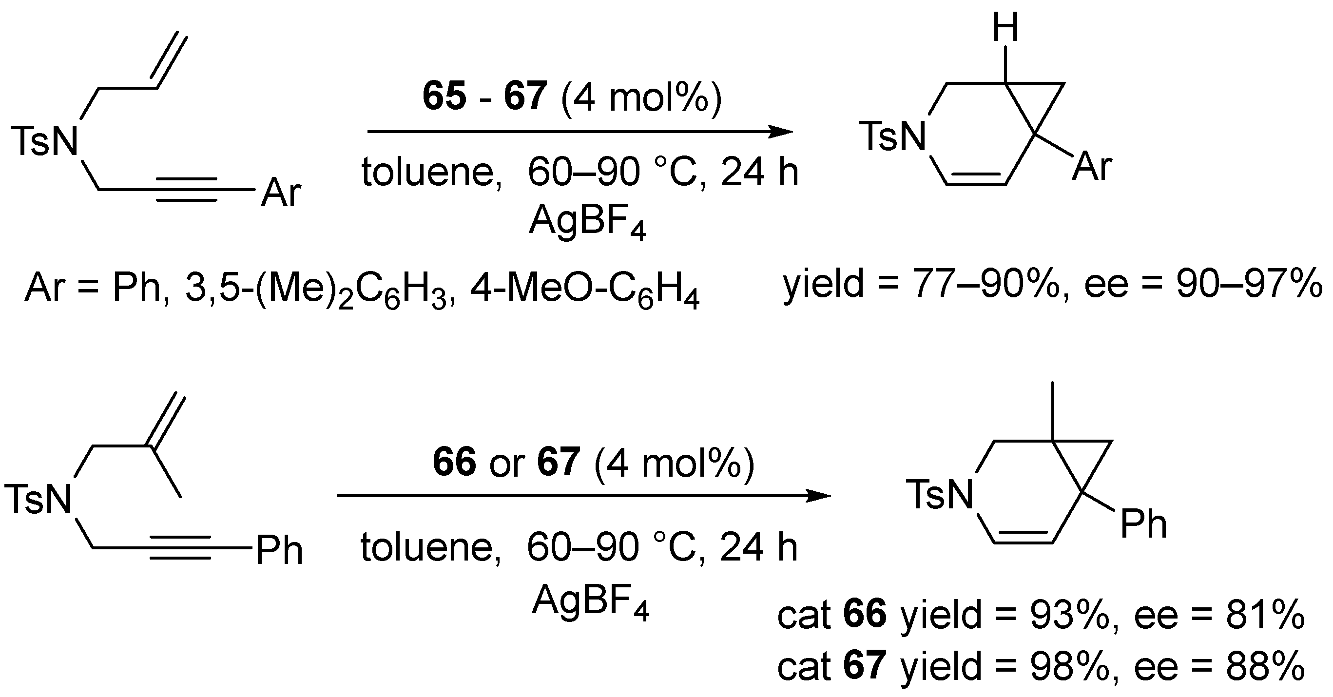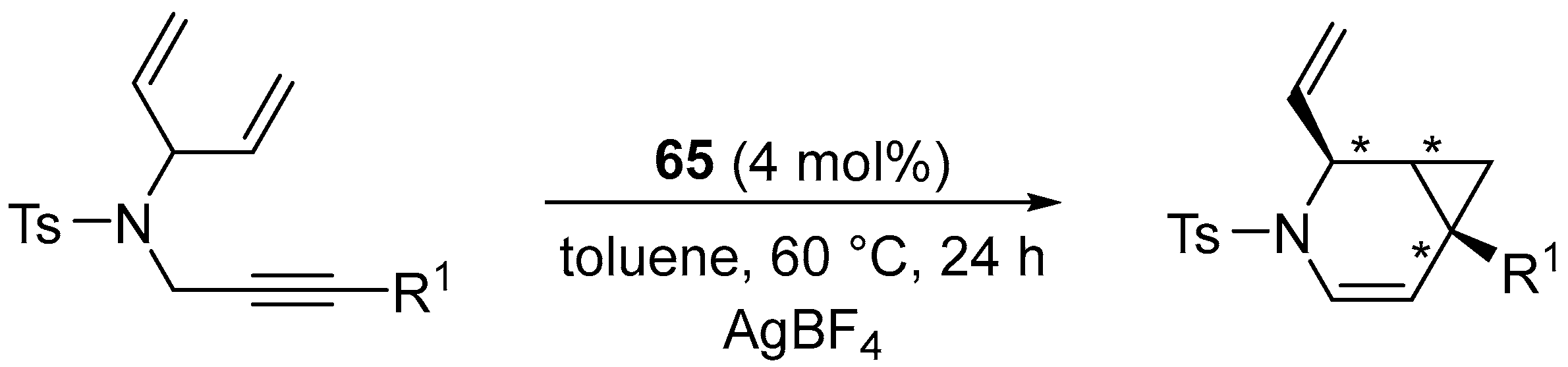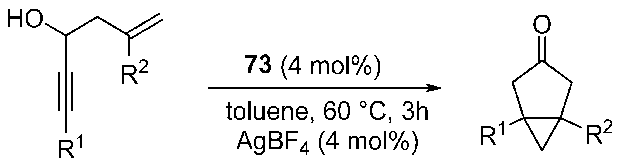 - Michelet, V.; Toullec, P.Y.; Genêt, J.-P. Cycloisomerization of 1,n-Enynes: Challenging Metal-Catalyzed Rearrangements and Mechanistic Insights. Angew. Chem. Int. Ed. 2008, 47, 4268–4315. [Google Scholar] [CrossRef] [PubMed]