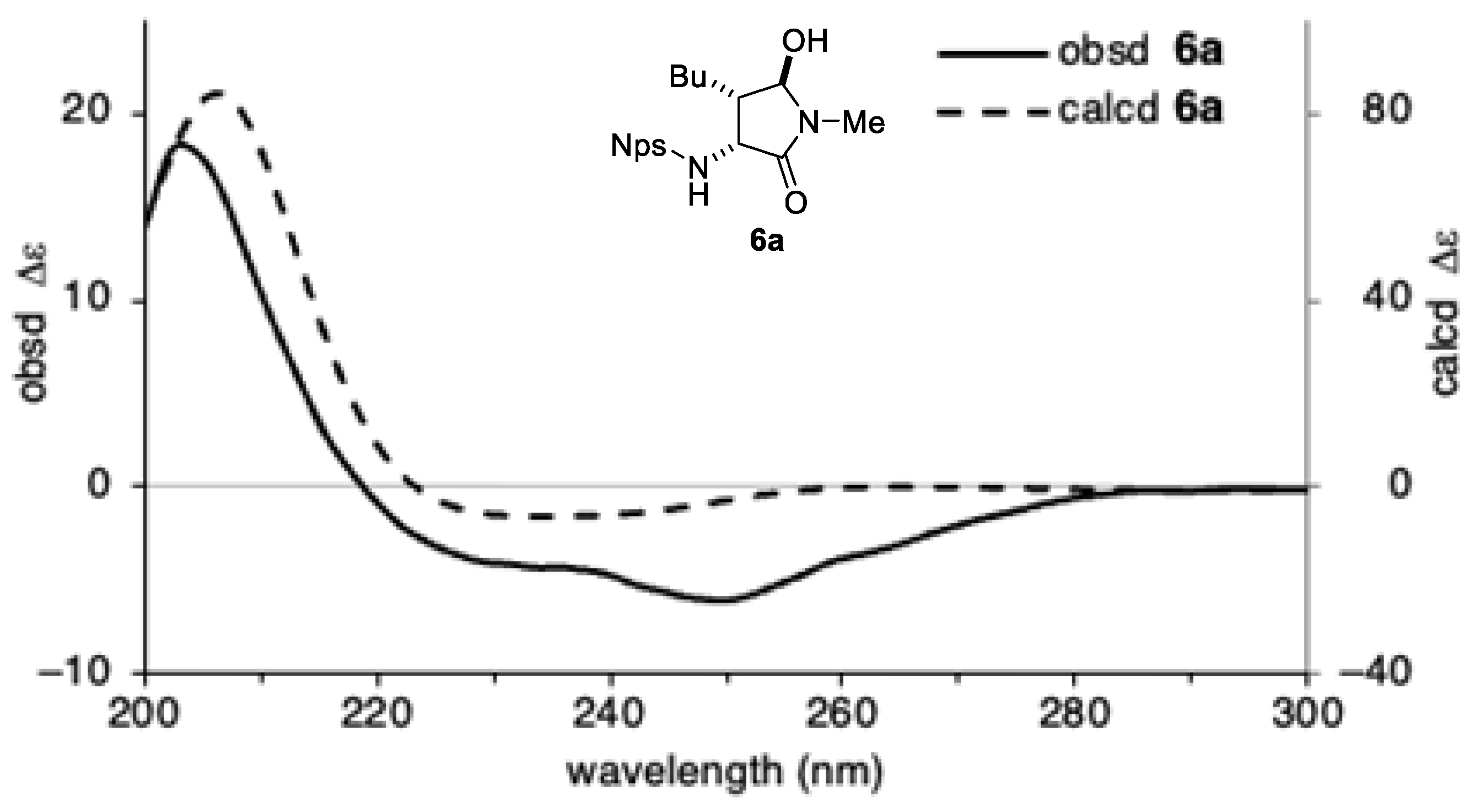 3.2. General Procedure for Mannich Reaction of N-Nps Imino Acetamide 1: (3R,4S,5R)-4-Butyl-5-hydroxy-1-methyl-3-(2-nitrophenylthioamino)pyrrolidin-2-one (6a) and (3R,4S,5S)-4-Butyl-5-hydroxy-1-methyl-3-(2-nitrophenylthioamino)pyrrolidin-2-one (epi-6a)