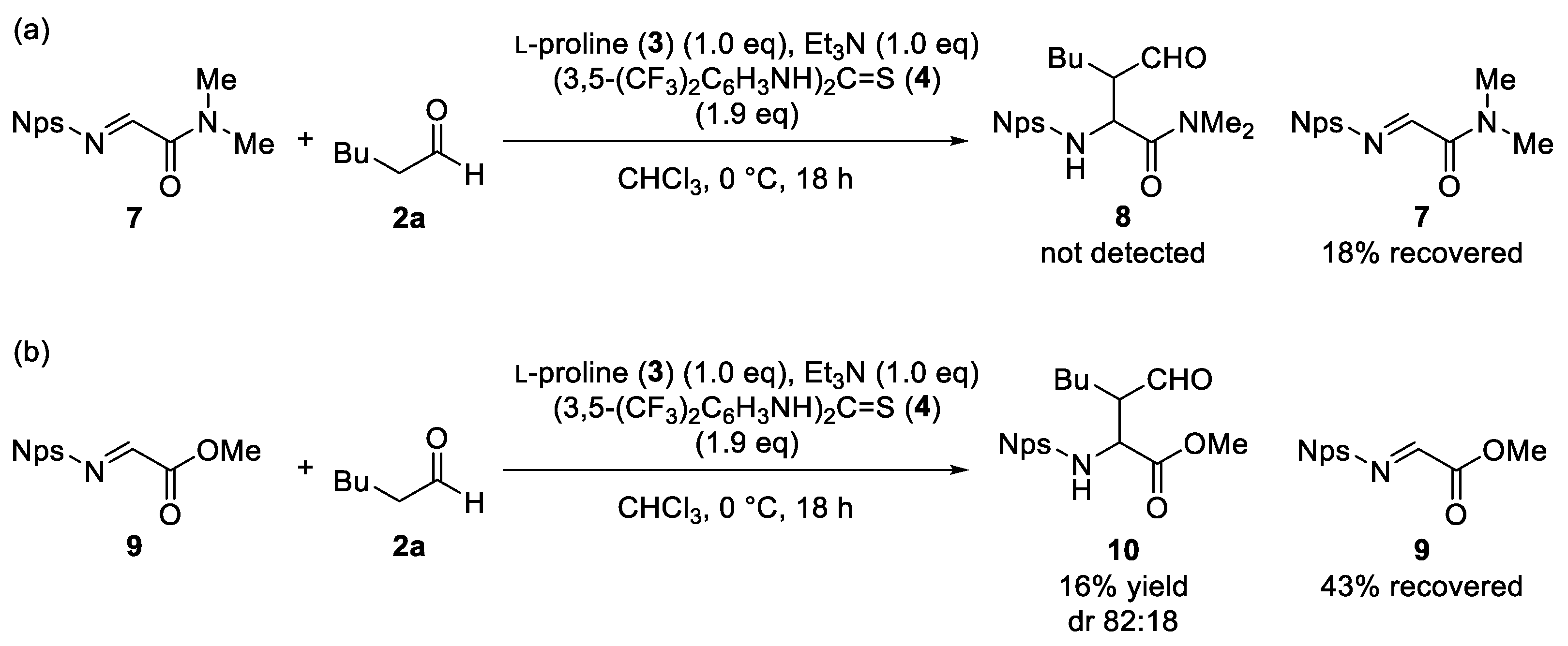 - Demir, A.S.; Baseken, S. Study of Asymmetric Aldol and Mannich Reactions Catalyzed by Proline–Thiourea Host–Guest Complexes in Nonpolar Solvents. Tetrahedron Asymmetry 2013, 24, 515. [Google Scholar] [CrossRef]