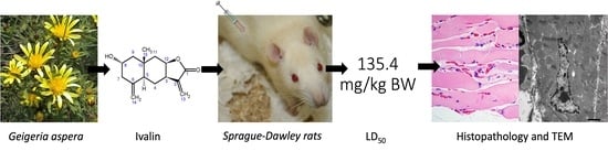 Locke S, Botha C, Clift S, Lensink A. The Approximate Subcutaneous LD50 and Associated Lesions Induced by Ivalin, Extracted and Purified from Geigeria aspera Harv., in Sprague–Dawley Rats. Molecules. 2026; 31(3):478. https://doi.org/10.3390/molecules31030478