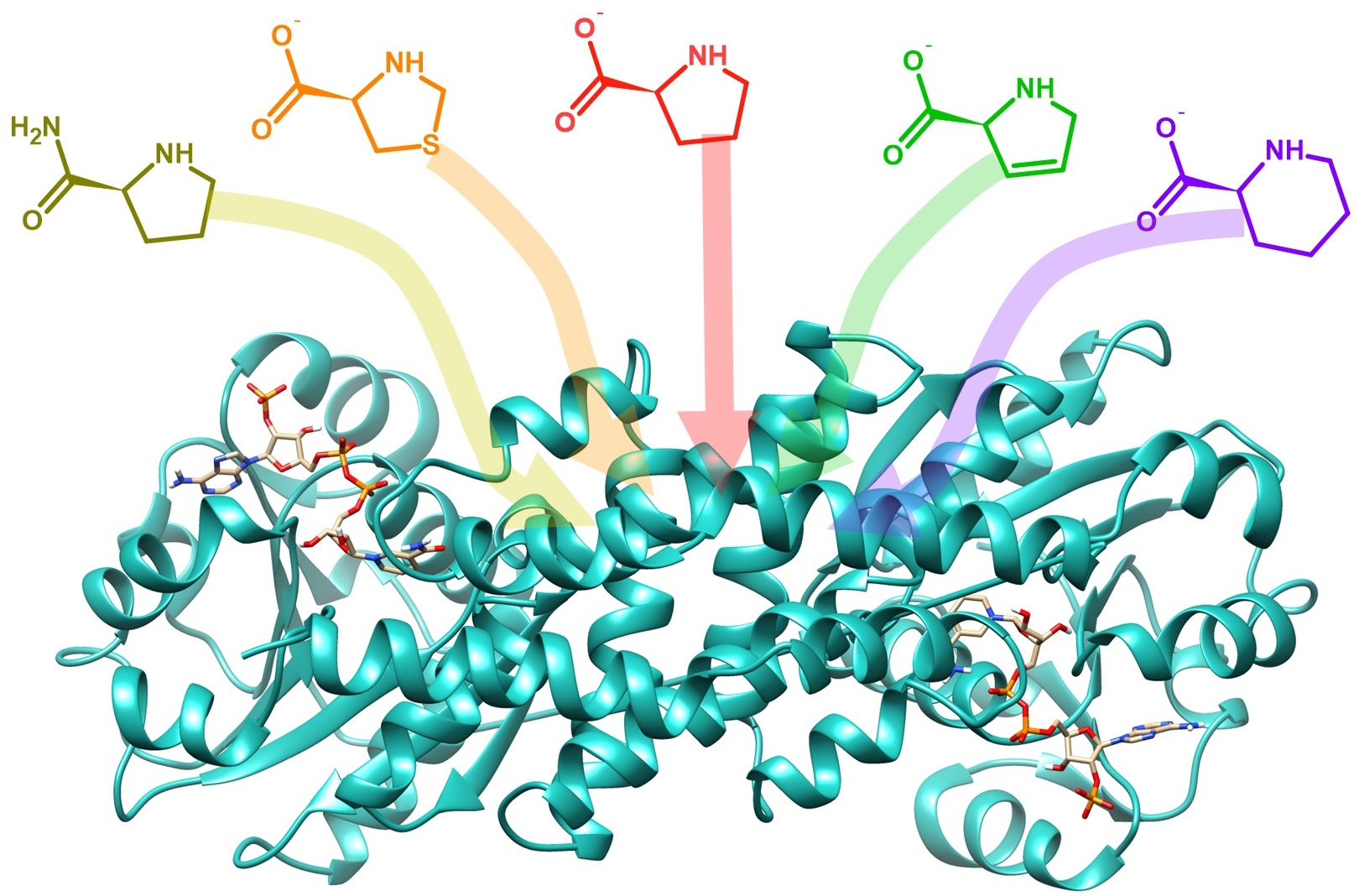 | 3,4-dehydro-L-proline (DHP) | 9.1 ± 0.9 | 0.54 ± 0.31 | 16,900 ± 7500 | - |