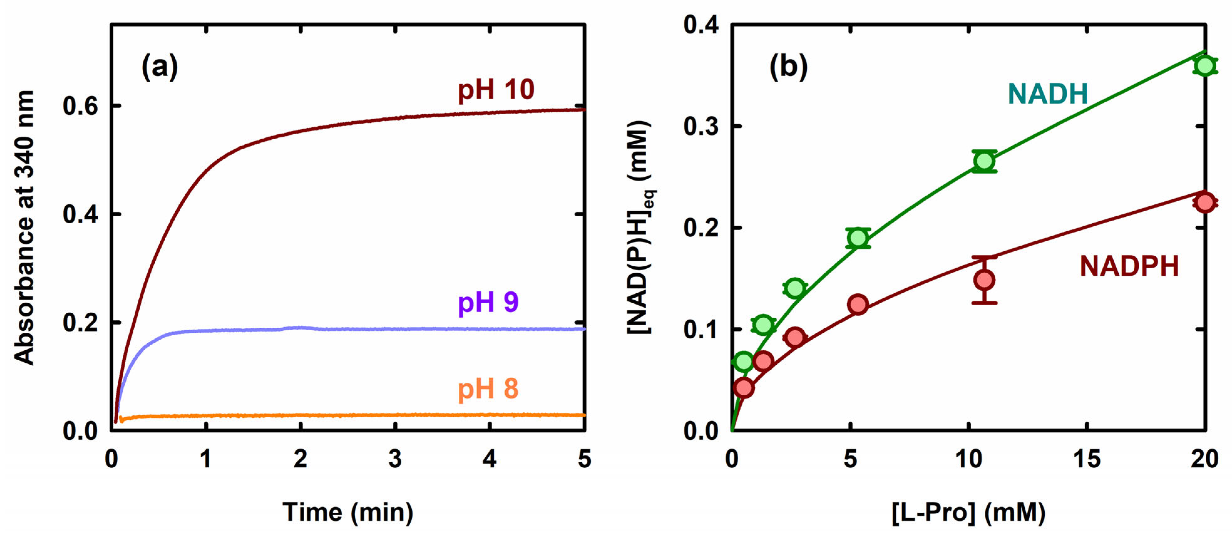 4.3. Calculating the Apparent Equilibrium Constant for L-Pro Oxidation at pH 10.0