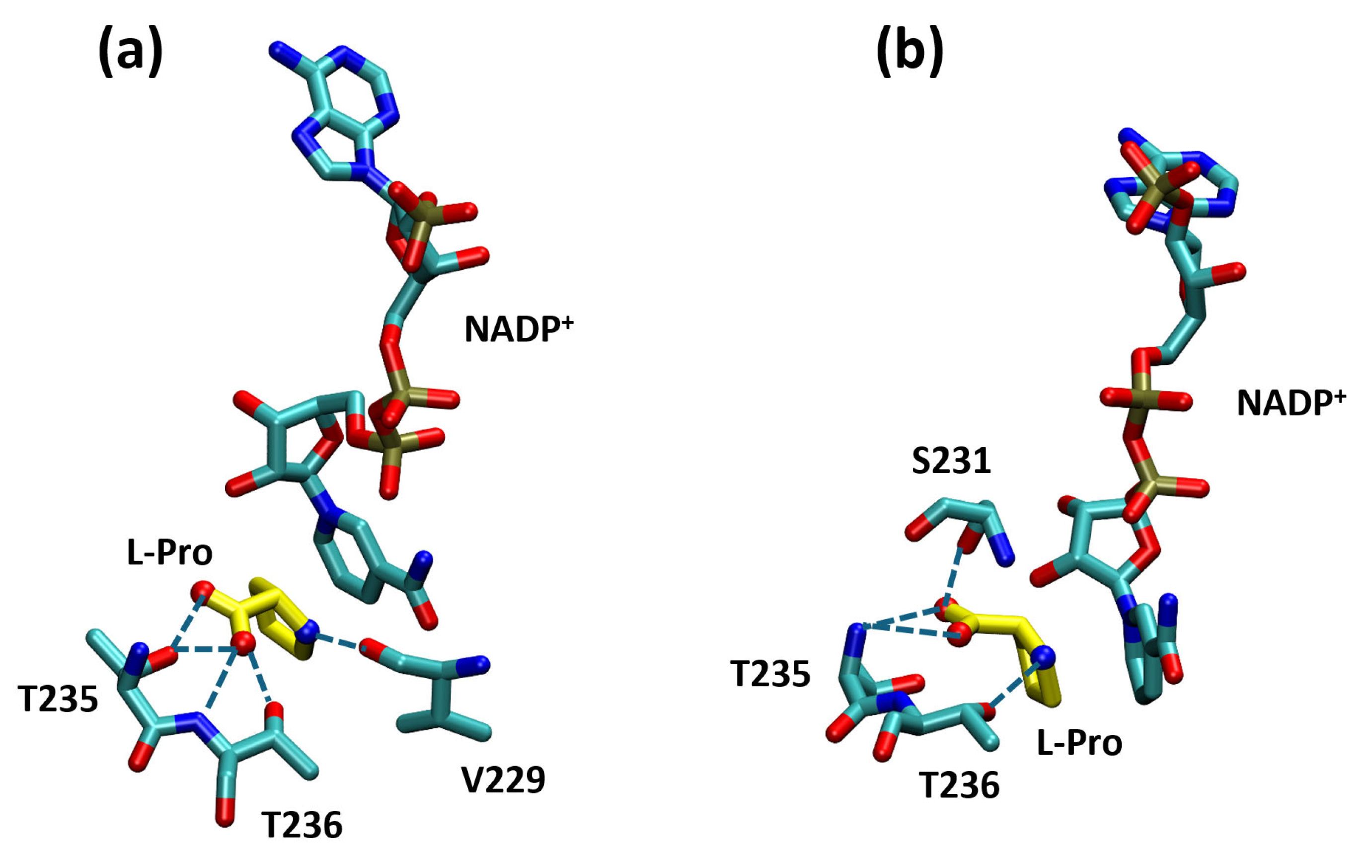 - Christensen, E.M.; Patel, S.M.; Korasick, D.A.; Campbell, A.C.; Krause, K.L.; Becker, D.F.; Tanner, J.J. Resolving the Cofactor-Binding Site in the Proline Biosynthetic Enzyme Human Pyrroline-5-Carboxylate Reductase 1. J. Biol. Chem. 2017, 292, 7233–7243. [Google Scholar] [CrossRef]
