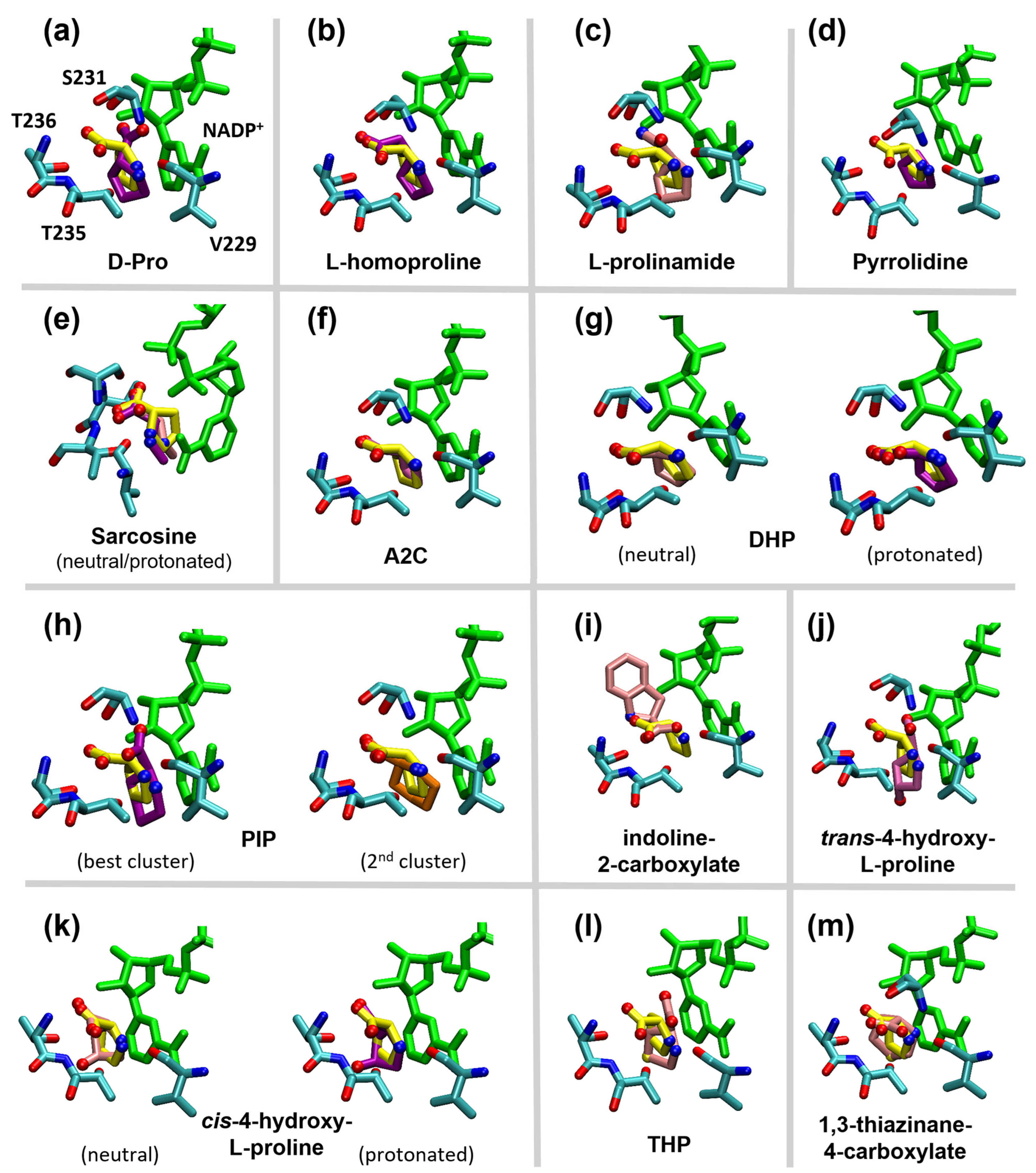2.7. Docking Analysis of Different L-Pro Analogs Binding to ProC