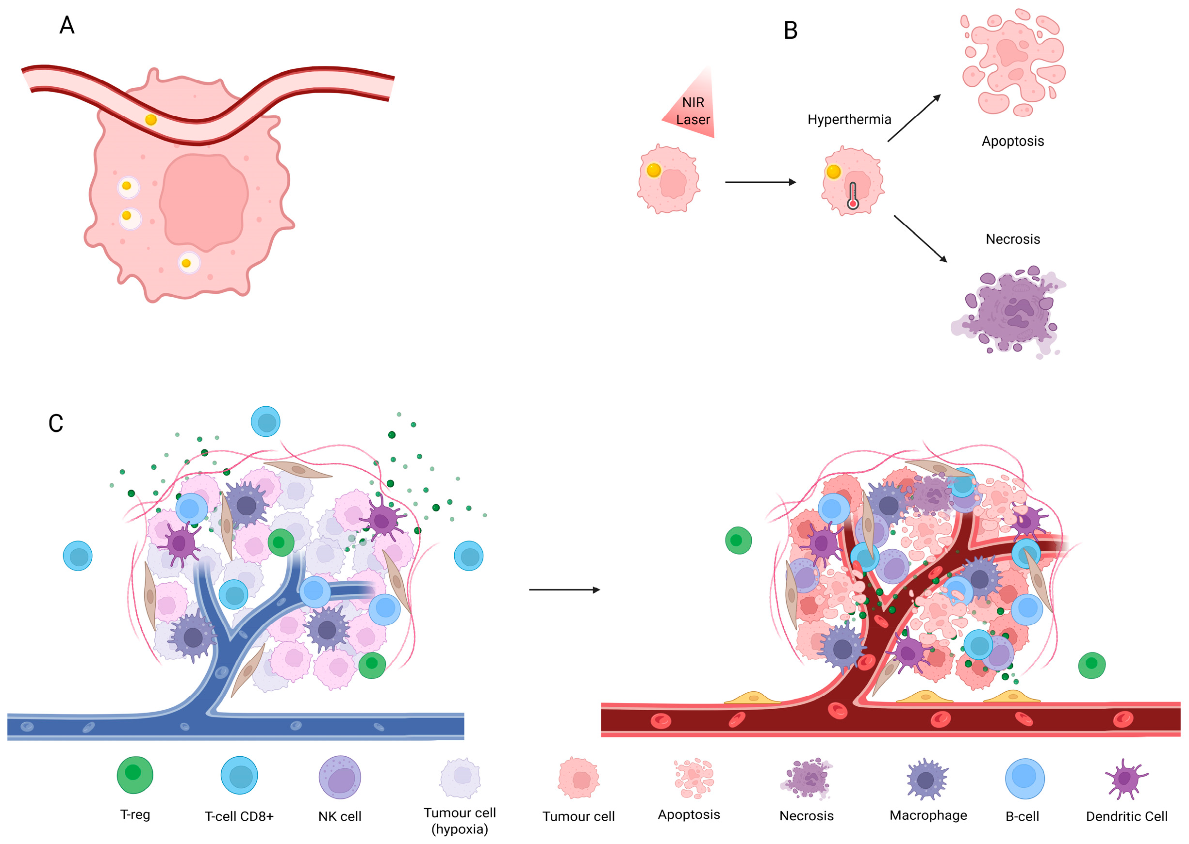 | US 20240285760 A1 | Methods and Compositions for Remote Control of T Cell Therapies via Thermal Targeting | IT + PTT | Remote thermal modulation to guide and enhance T-cell therapies using external heat stimuli. | Controlled activation of engineered T-cells in solid tumors. | [119] |