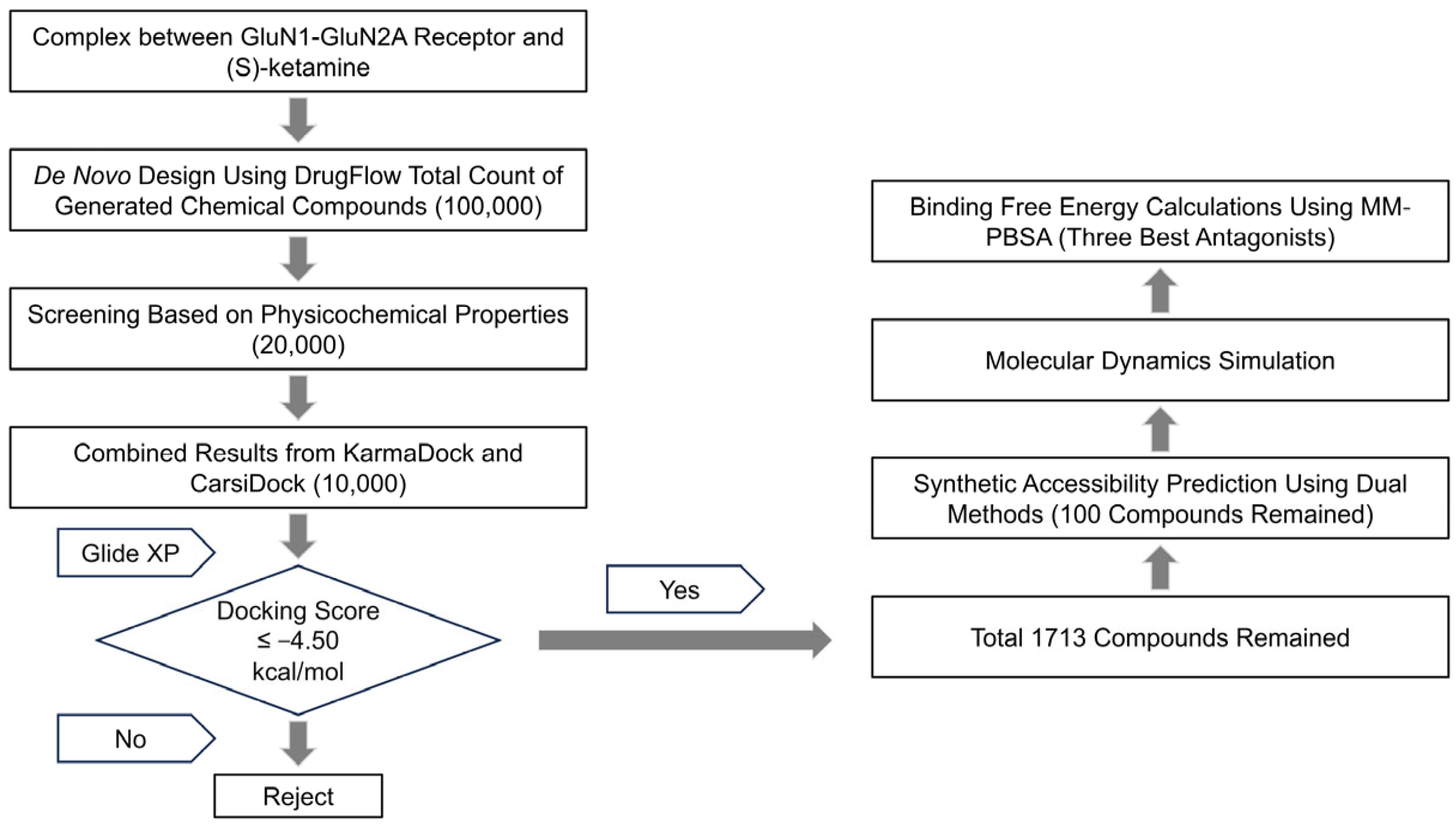 Chicago/Turabian StyleLiu, Yibo, Zhijiang Yang, Yixuan Guo, Tengxin Huang, Li Pan, Junjie Ding, and Weifu Dong. 2026. "De Novo Generation-Based Design of Potential Computational Hits Targeting the GluN1-GluN2A Receptor" Molecules 31, no. 3: 522. https://doi.org/10.3390/molecules31030522