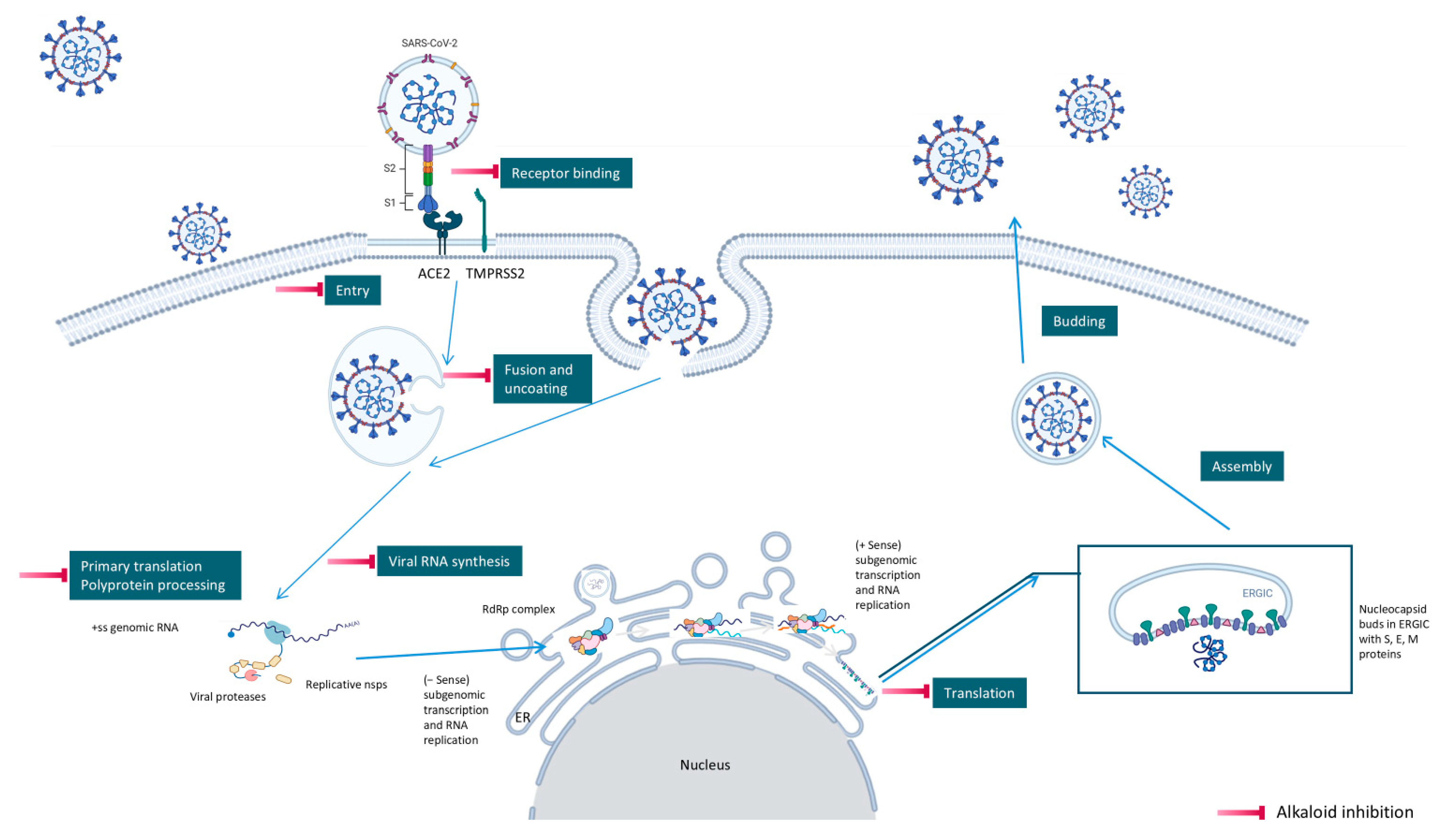 3.3. Alkaloid Antiviral Modes of Action