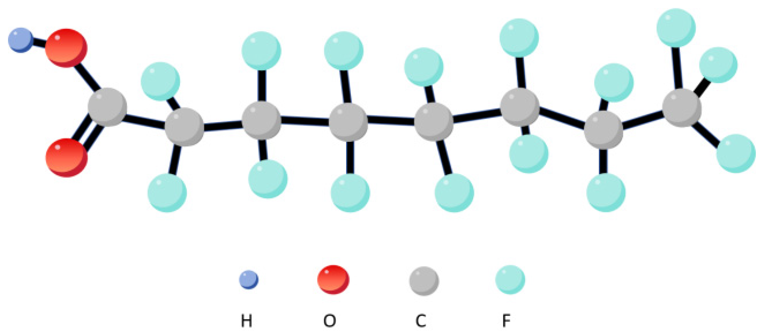 - Wee, S.Y.; Aris, A.Z. Environmental Impacts, Exposure Pathways, and Health Effects of PFOA and PFOS. Ecotoxicol. Environ. Saf. 2023, 267, 115663. [Google Scholar] [CrossRef]